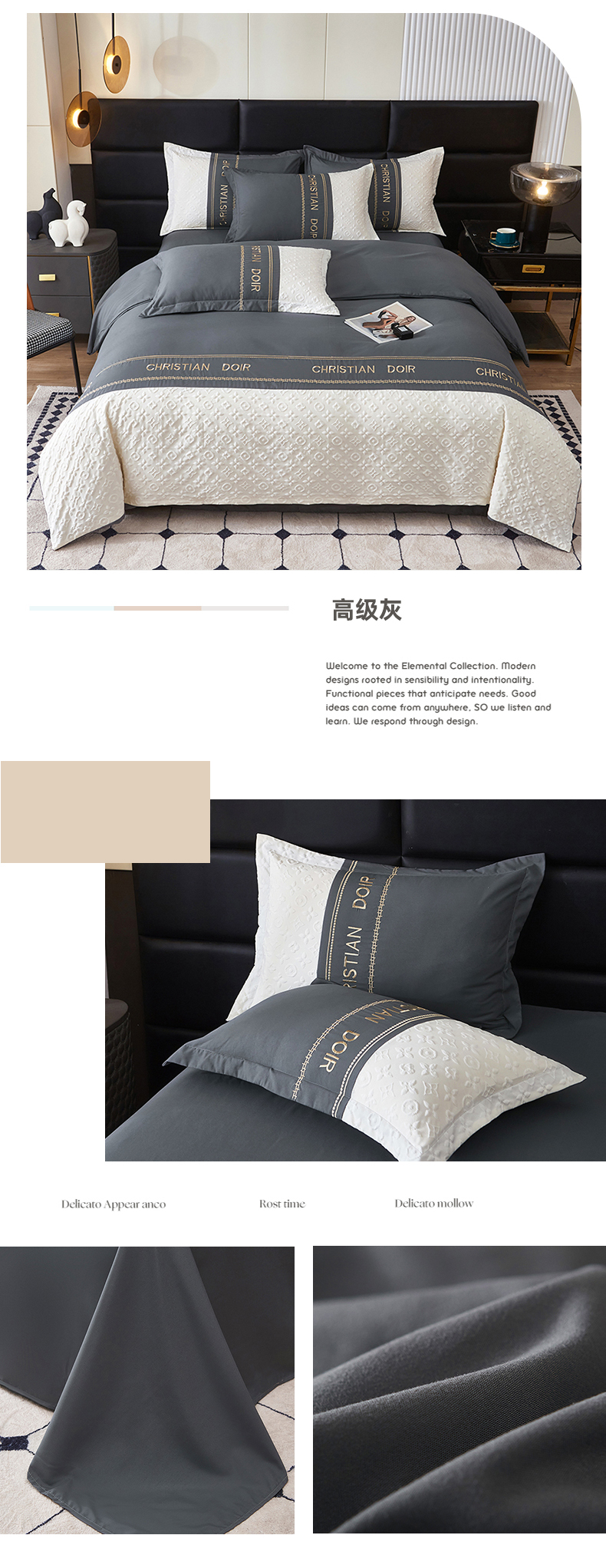 (总)富宁家纺 2025新款立体雕花牛奶绒绣花四件套-洛卡玫瑰系列,洛卡白,玫瑰灰,洛卡咖,玫瑰粉,洛卡蓝