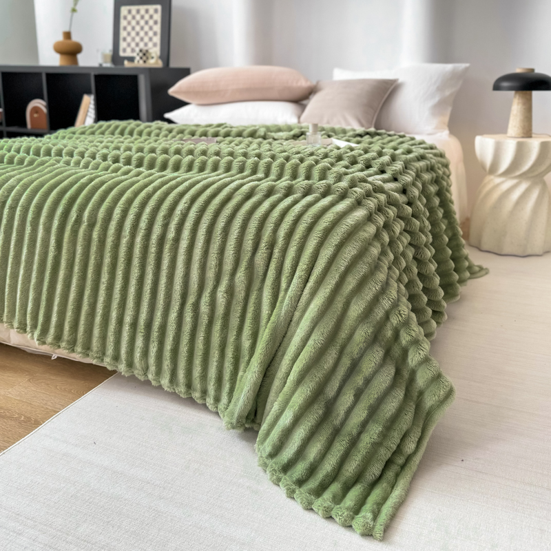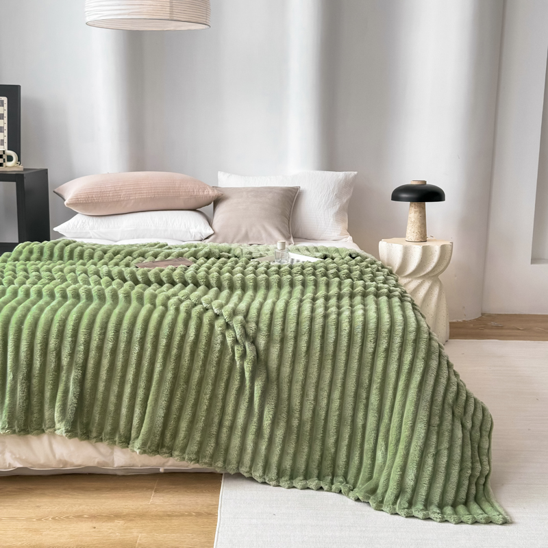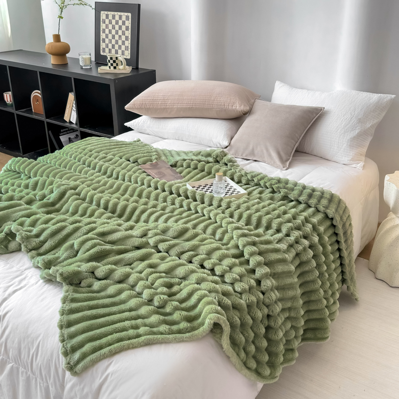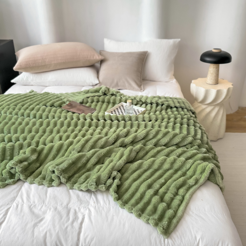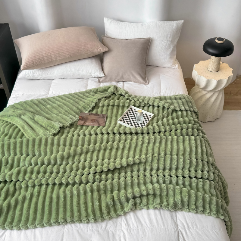 羋多 2024新款跨境仿兔毛绒多功能毛毯高克重魔法绒4公分宽抽条毛毯 远山绿