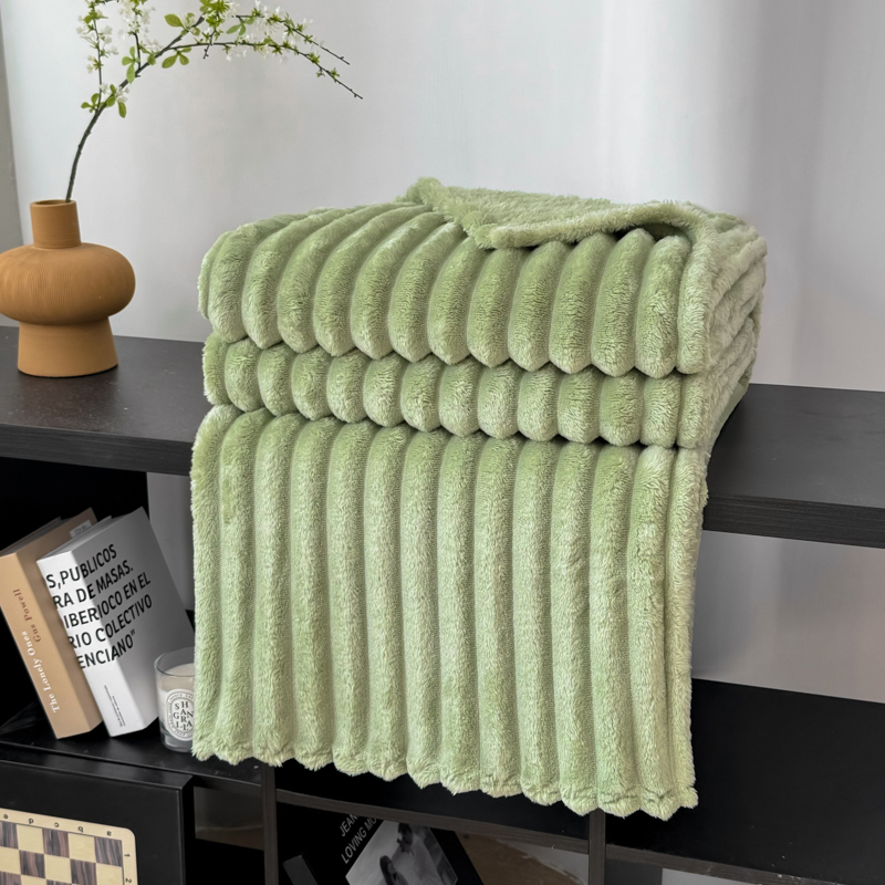 (总)穆琪2025新款轻奢盖毯高克重多层提花绵柔绒保暖毛毯绵密亲肤沙发毯休闲小毯子,果绿,浅咖,秋波蓝,水晶紫,象牙白,陨石灰