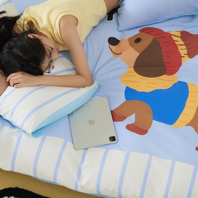(总)原研家居 2023新款40支全棉13070印花四件套-野兽派系列,樱桃猫,公主猫,波浪猫,黑乖,蓝条狗,小花狗,竹叶熊,水果茶,波点苹果,生椰冰淇凌,青春