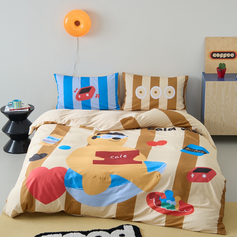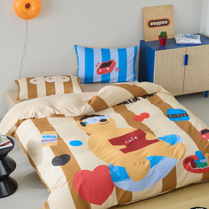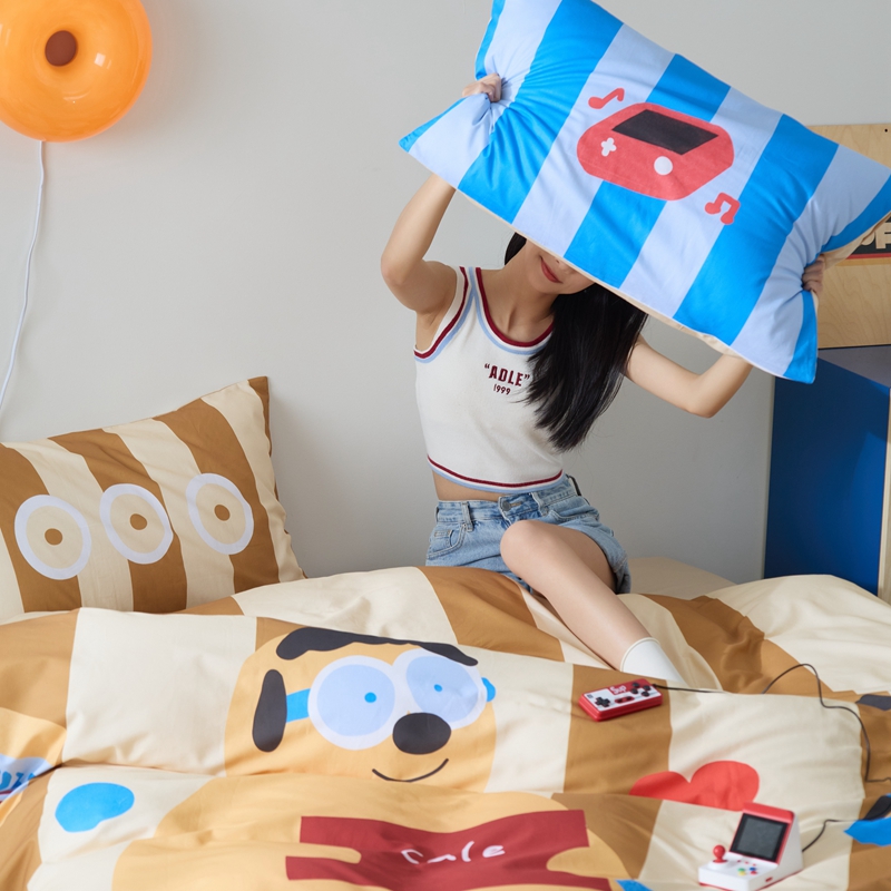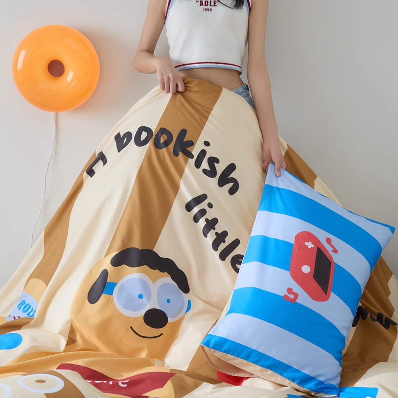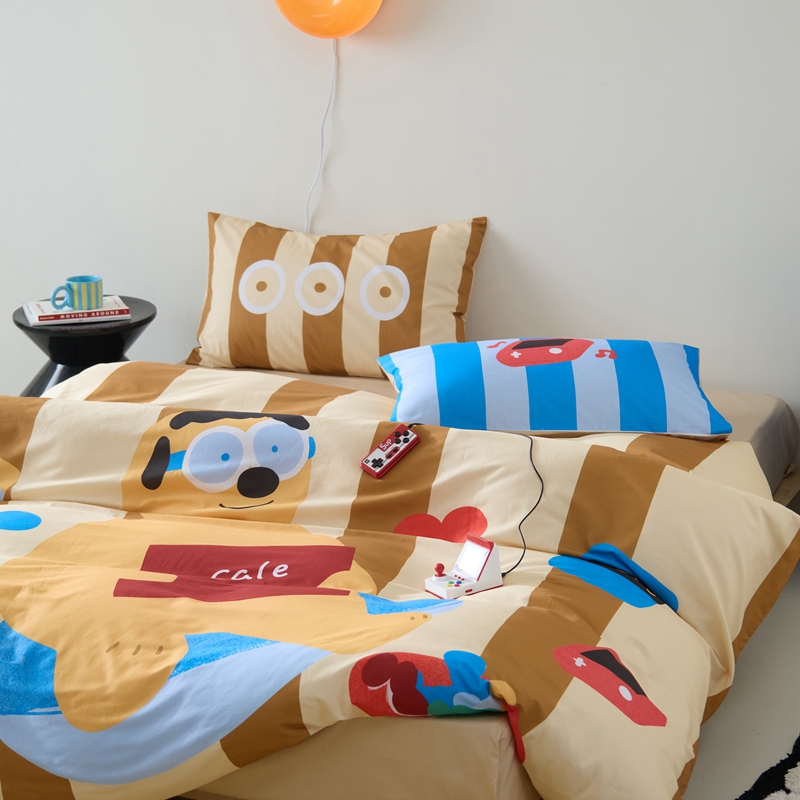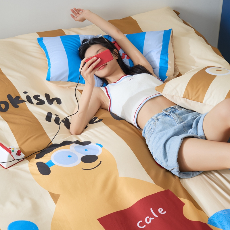 (总)原研家居 2023新款40支全棉13070印花四件套-野兽派系列,樱桃猫,公主猫,波浪猫,黑乖,蓝条狗,小花狗,竹叶熊,水果茶,波点苹果,生椰冰淇凌,青春