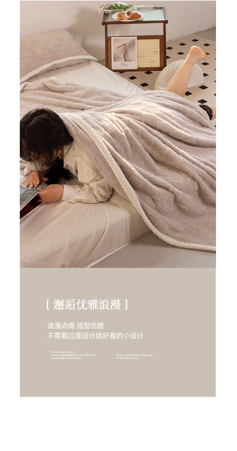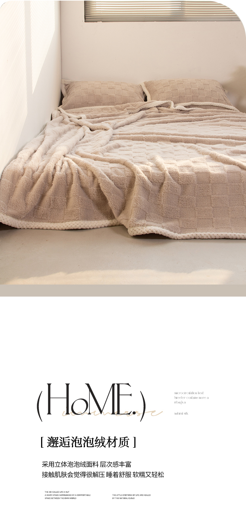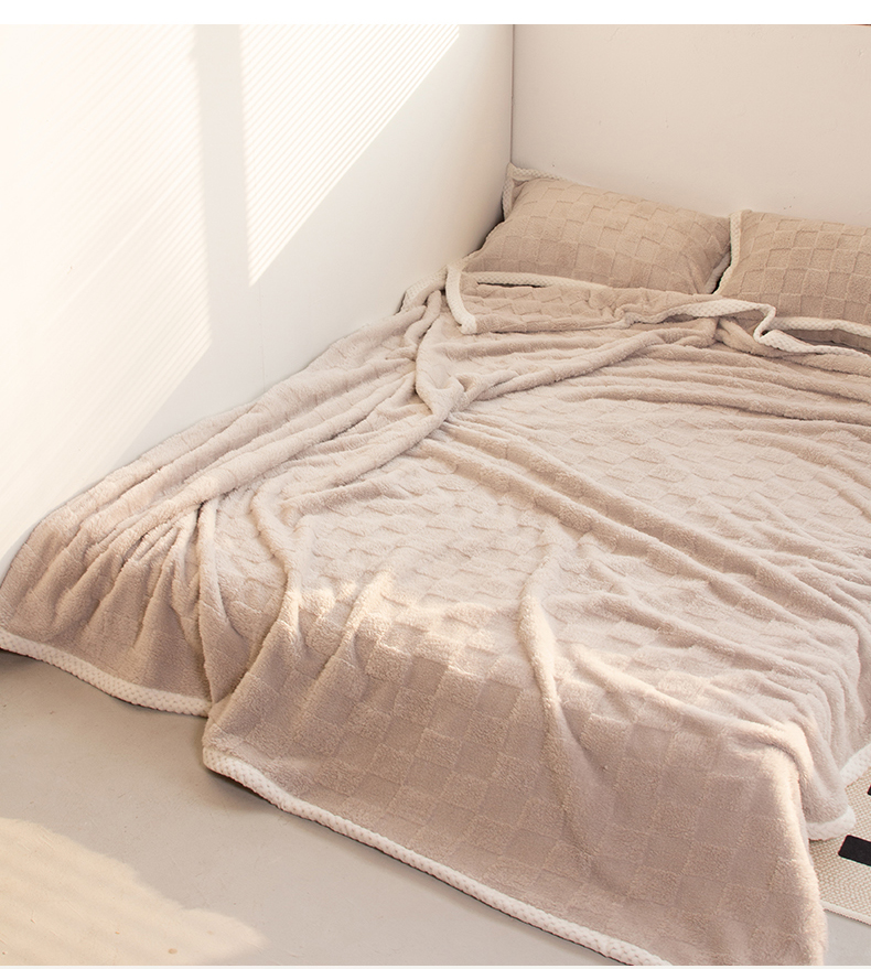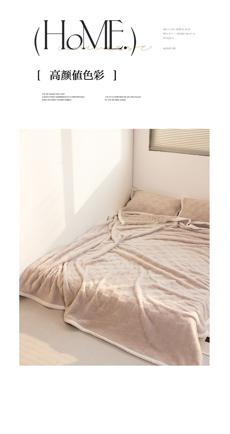 (总)美洲琳 2025新款提花简约珊瑚绒法莱绒毯毛毯毯子,白色,粉色,咖色,蓝灰,绿色,深灰