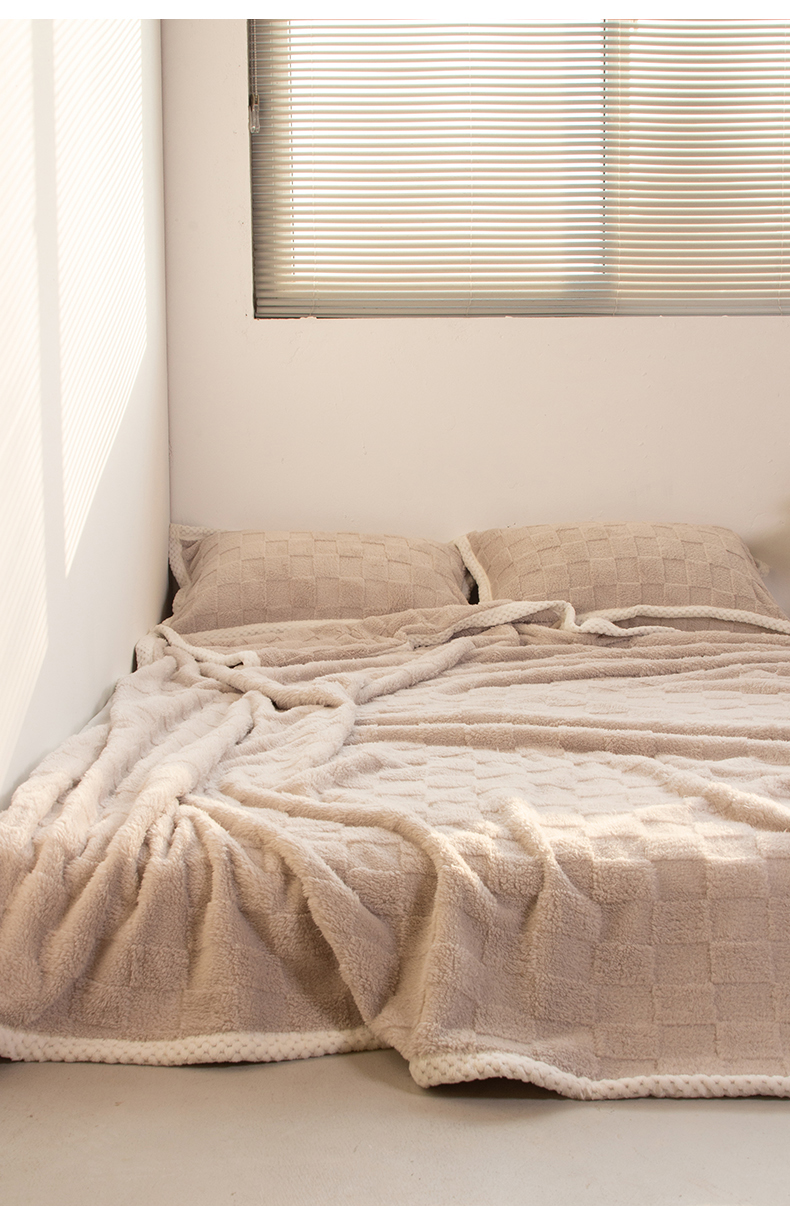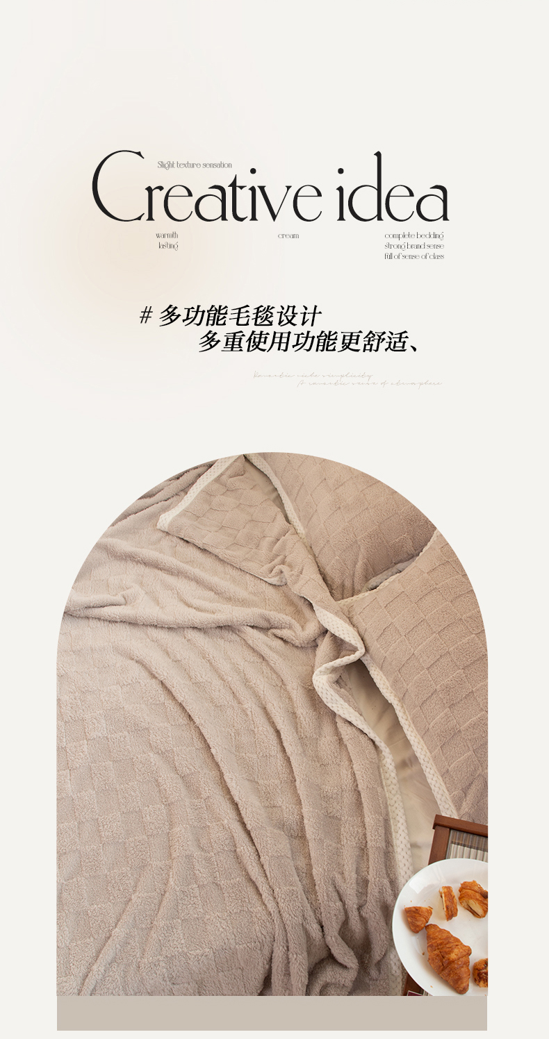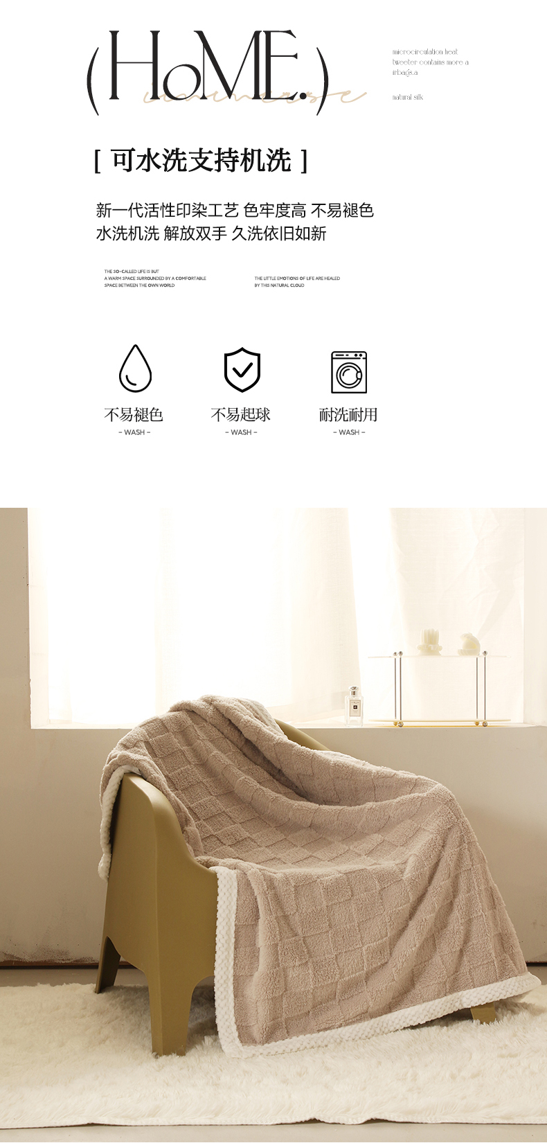 (总)美洲琳 2025新款提花简约珊瑚绒法莱绒毯毛毯毯子,白色,粉色,咖色,蓝灰,绿色,深灰