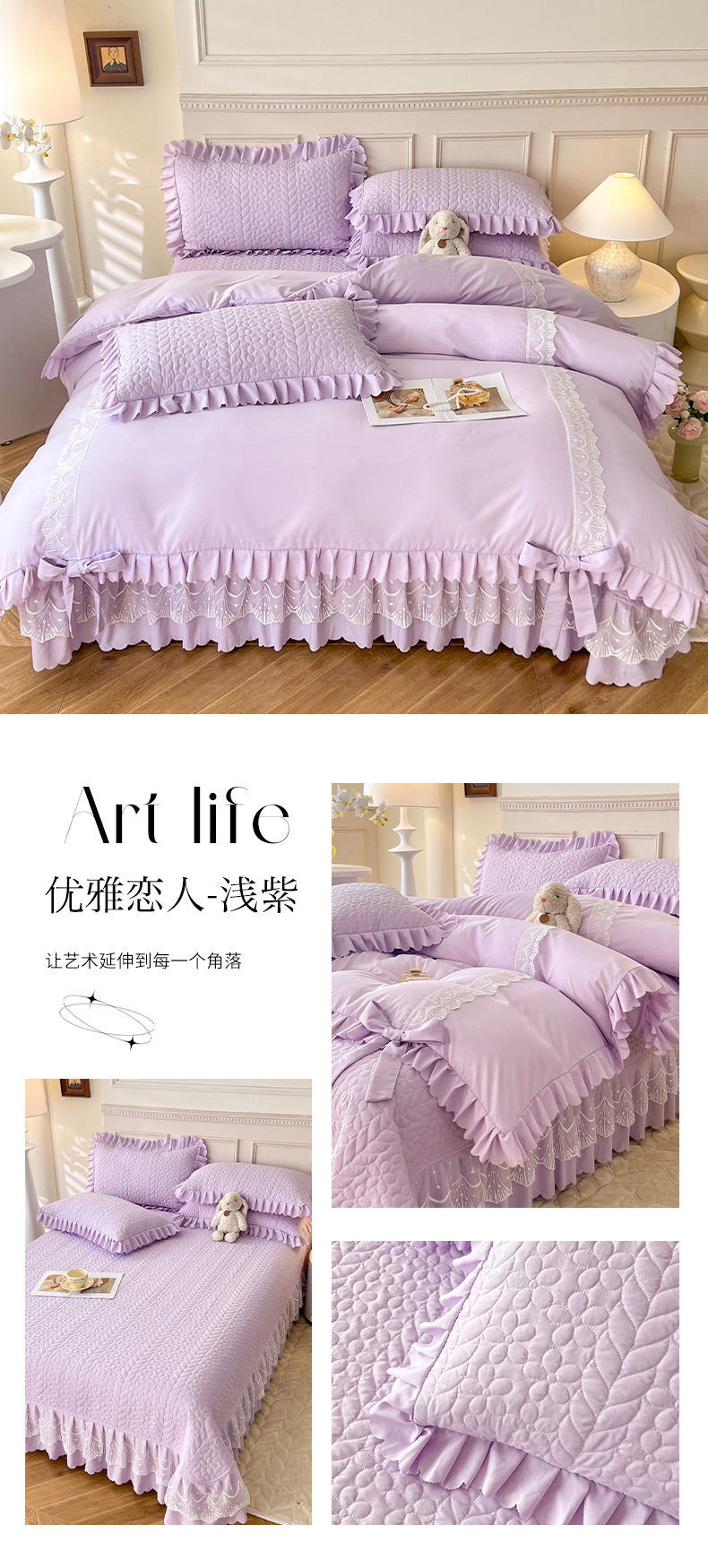 商品名称:唐人居 2025新款韩式花边蝴蝶结床盖四件套-优雅恋人 优雅恋人-浅紫