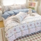 (总)楠沐家纺 2025年新款无印风学生印花四件套芦荟棉水洗棉,彩色波点,觅遇,晴空蓝格,亚麻灰格,烟雾灰格,英伦蓝格