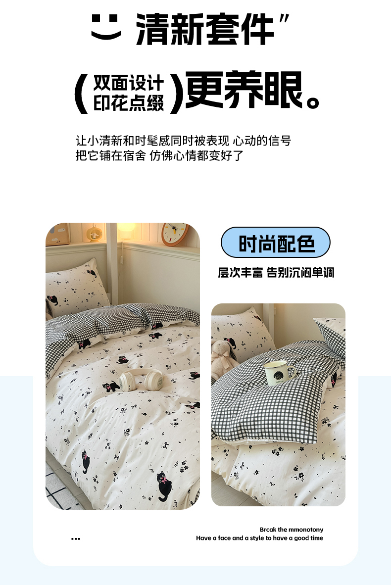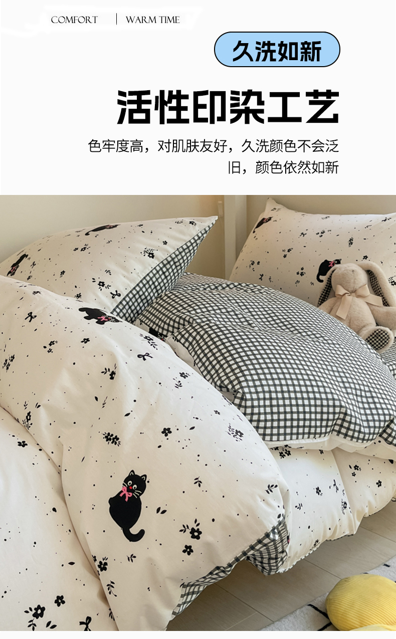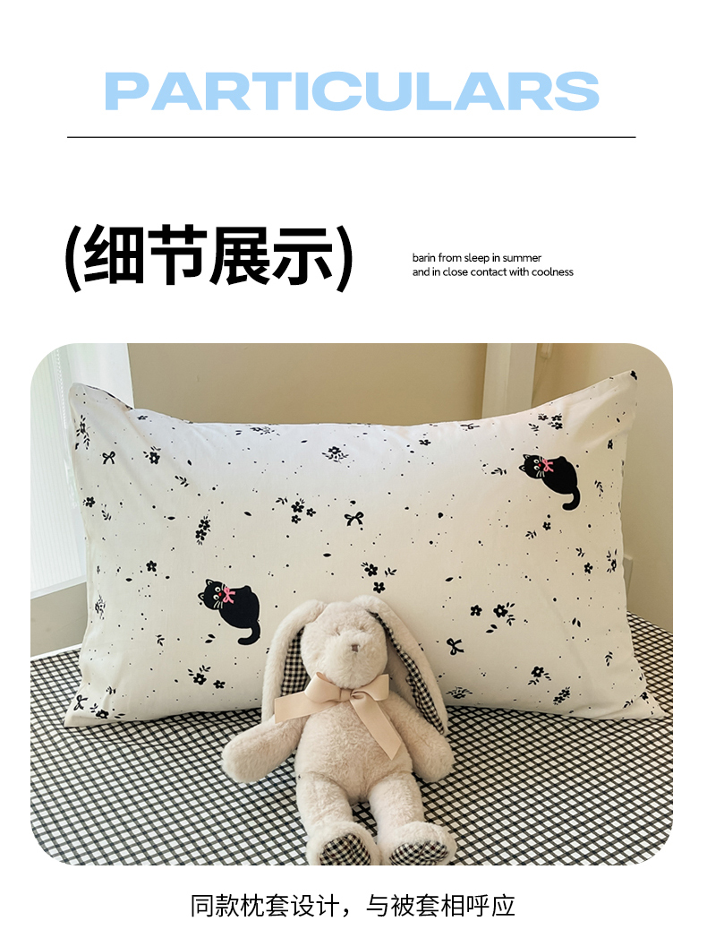吉象家纺 2025新款全棉印花款三件套 小黑猫