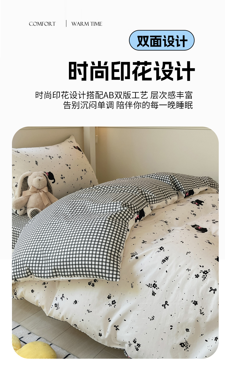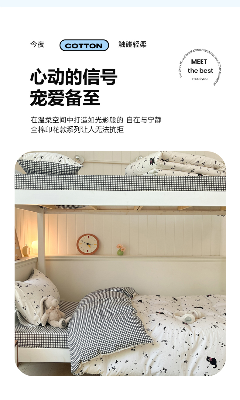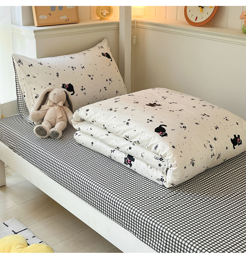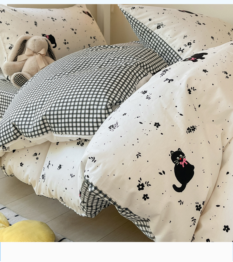吉象家纺 2025新款全棉印花款三件套 小黑猫