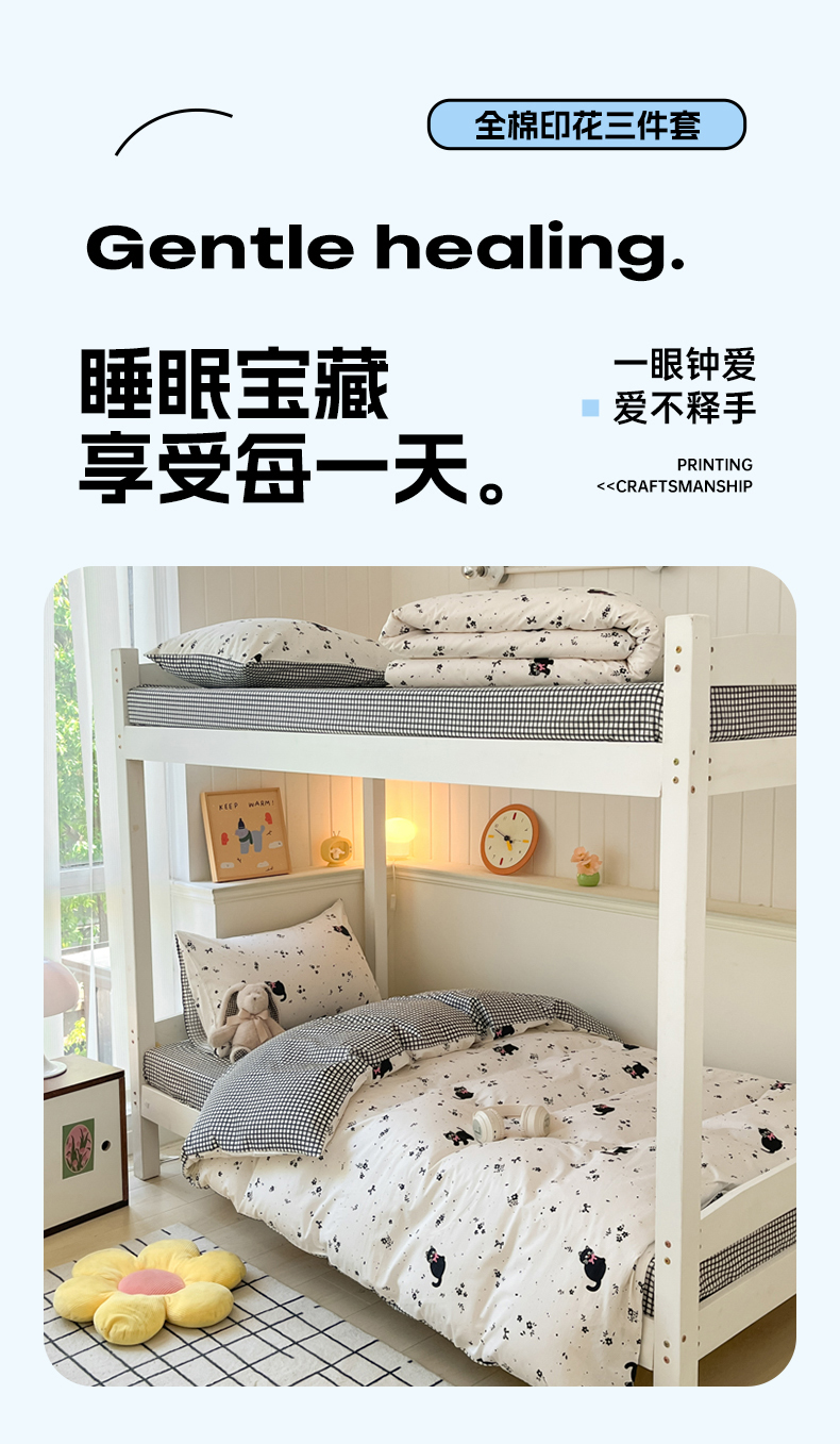 (总)吉象 2025新款全棉印花学生三件套学生宿舍三件套,霸王龙,马里奥,蜜桃兔,太空旅行,悉尼豆沙,悉尼绿
