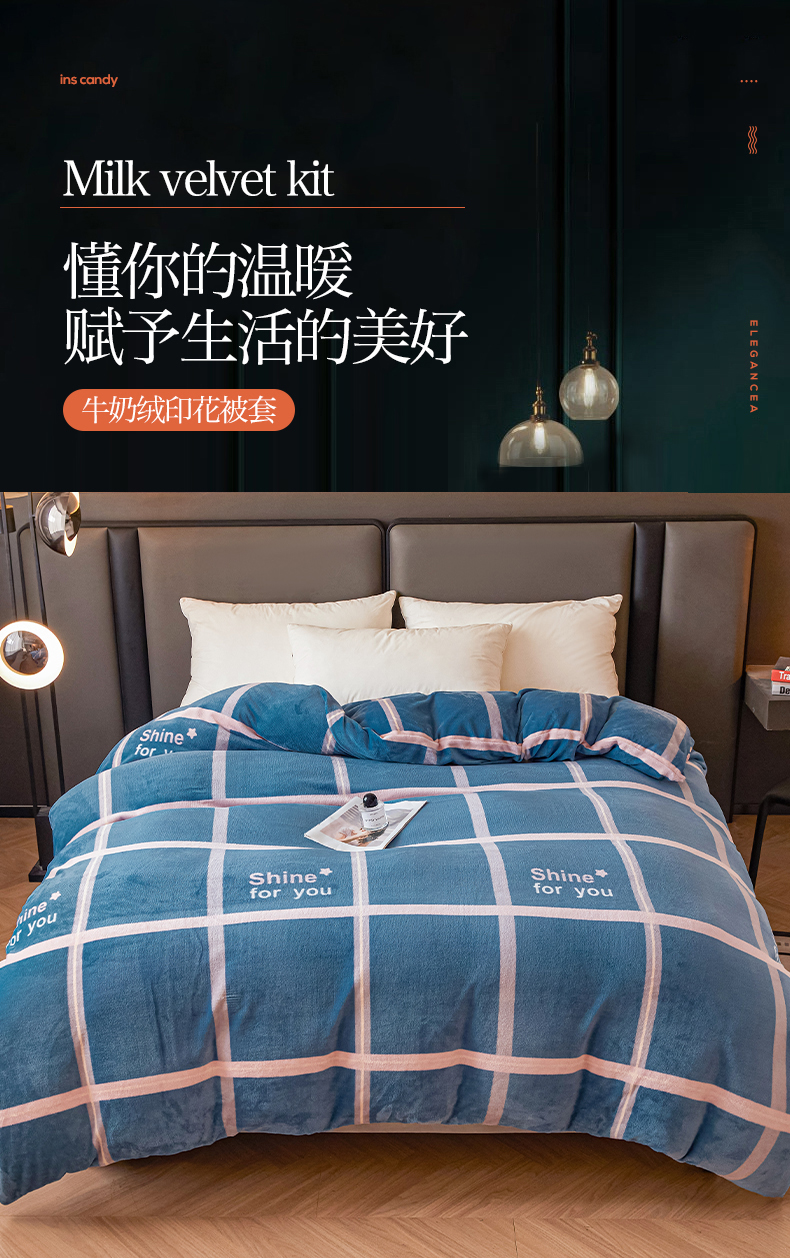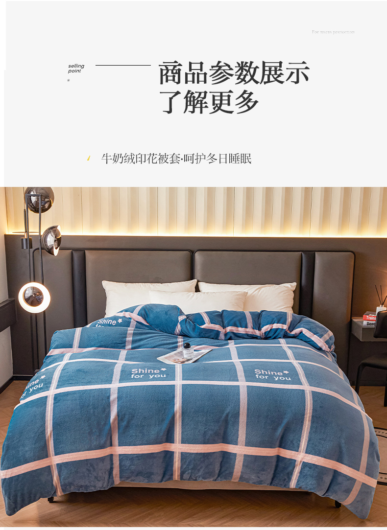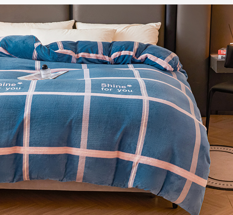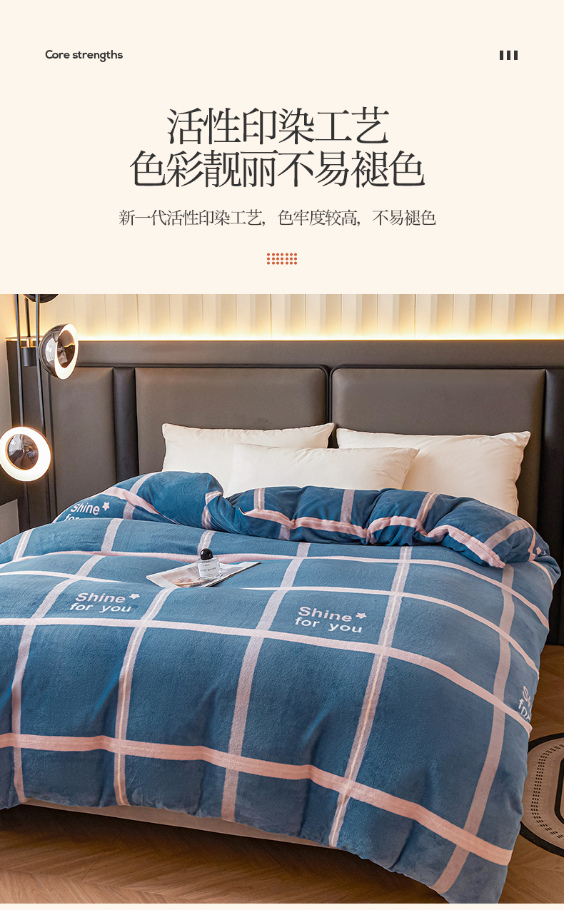 商品名称:董韵家纺 2025新款高克重全消光牛奶绒法莱绒金貂绒印花单品被套床裙四件套(提供买家秀) 为你发光-兰
