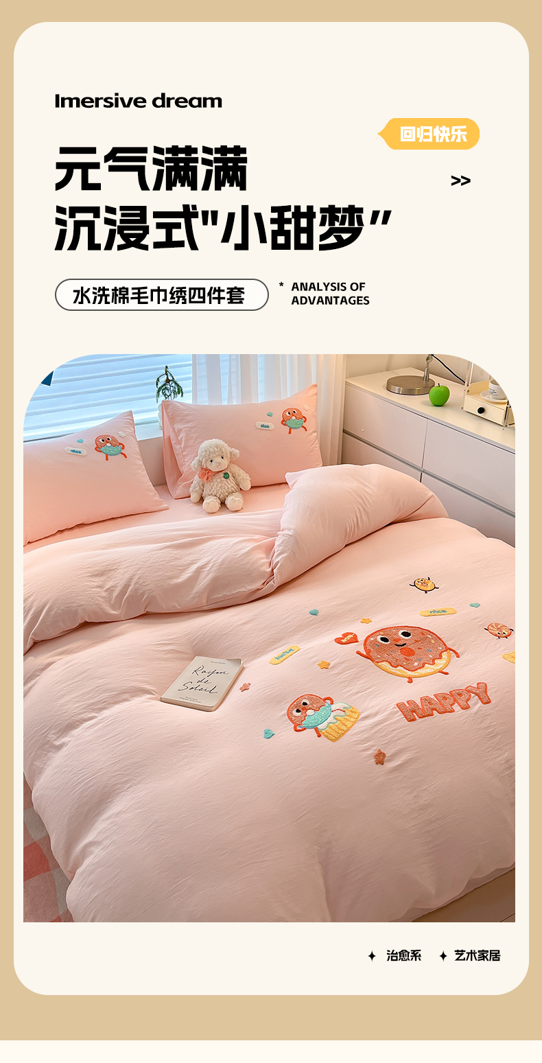 当前位置: 91家纺网 > 商品网购 > 床品套件 > 四件套 > 水洗棉四件套 > 优承佳生活馆 2024新款水洗m毛巾绣四件套 曲奇蛋糕