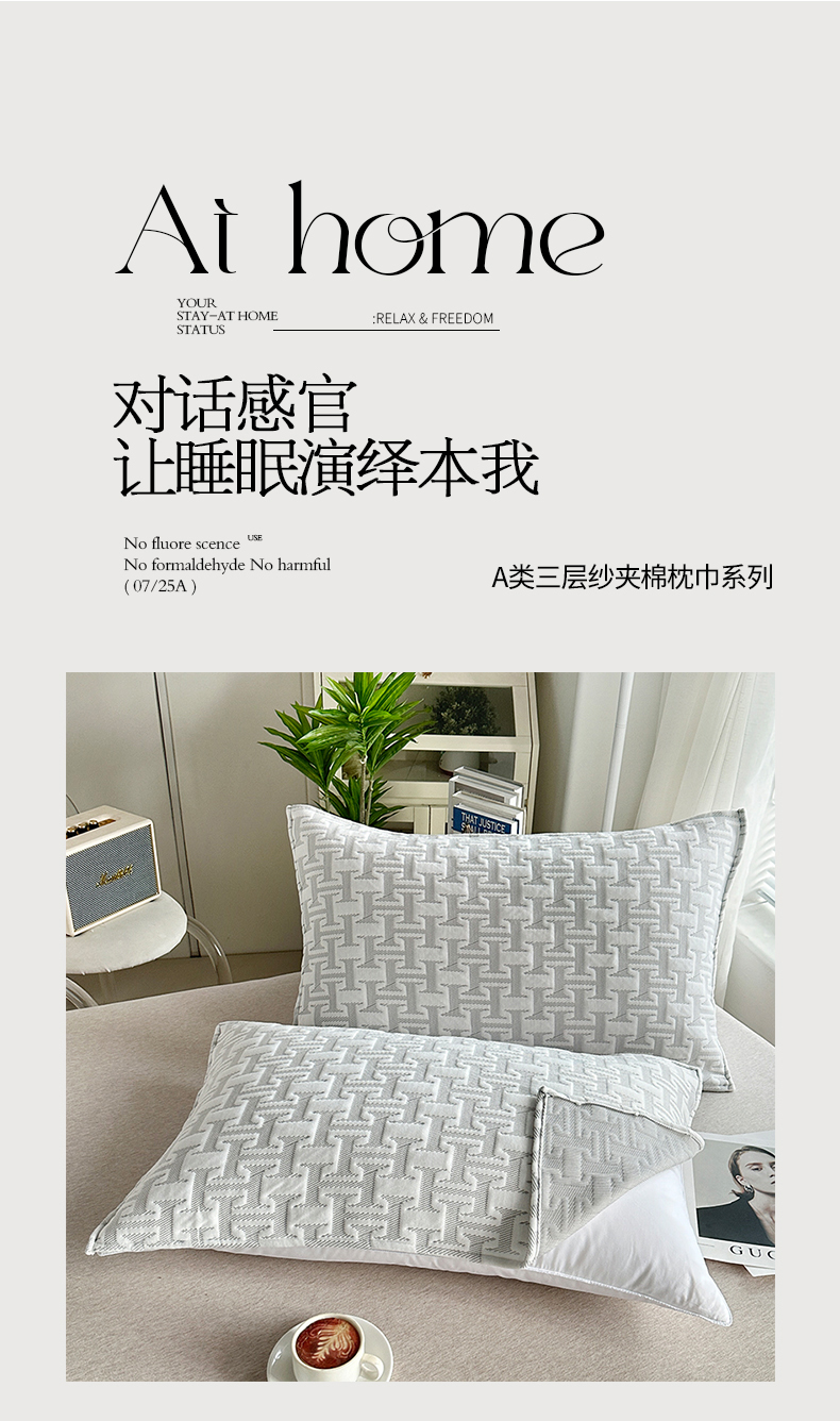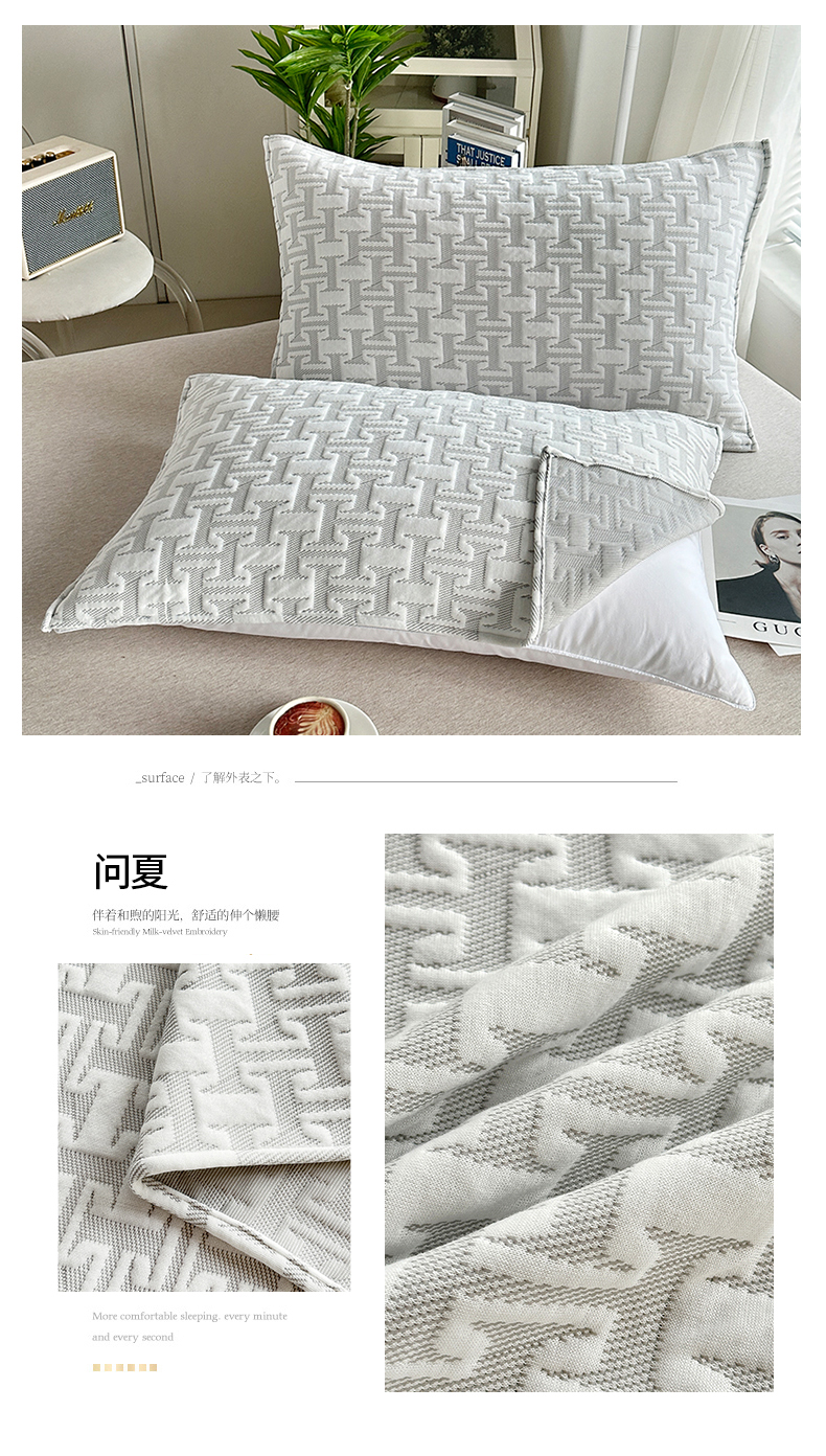 柏薇 2024新款针织棉三层纱夹棉枕巾 问夏30*50cm/只
