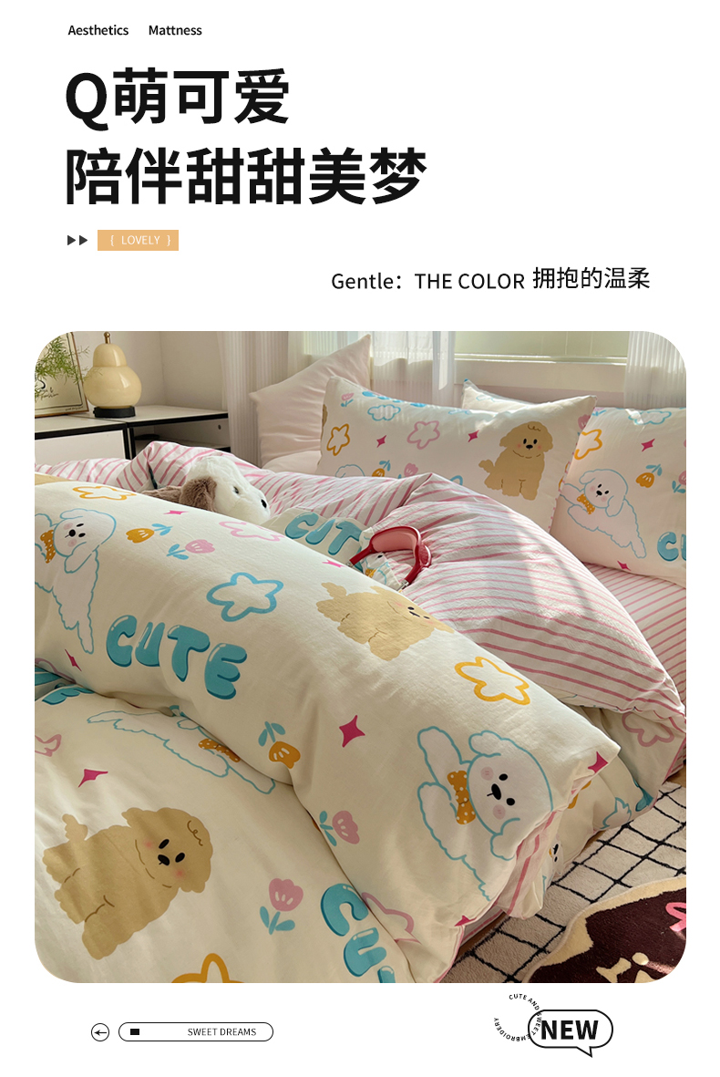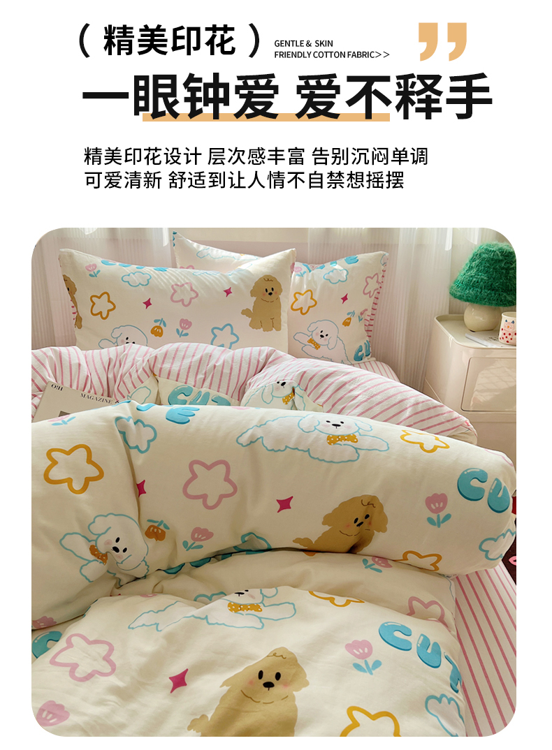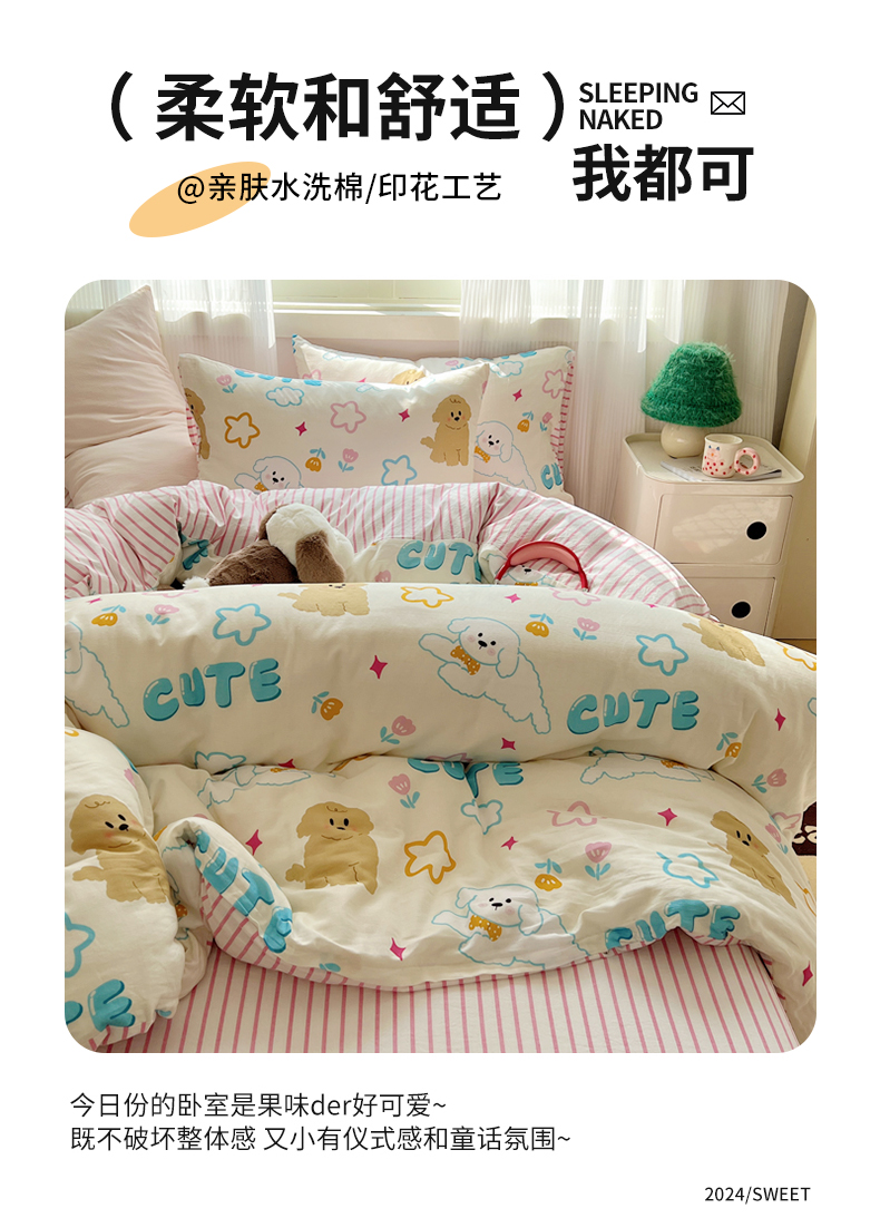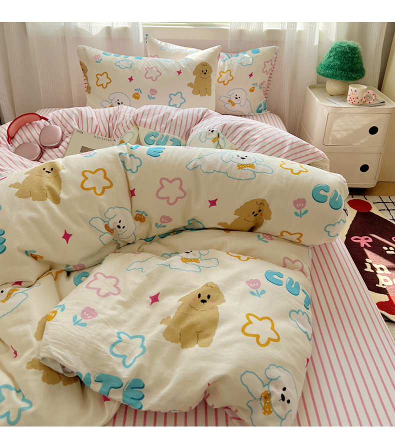 (总)繁花家居 2026简单款水洗棉四件套学生床三件套,小软猫,曲线蝴蝶结,芭乐可丽卷,粉格-小花熊,粉格小豹纹,咖腊肠狗,咖心小熊,红格撞青,幻想乐园