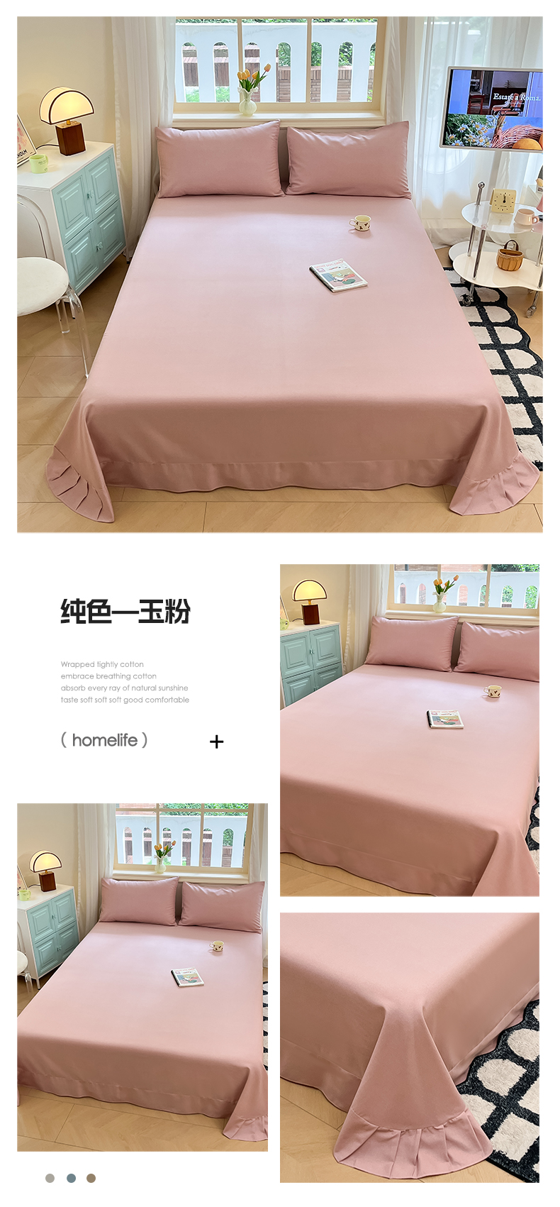 • 91家纺网 家纺一手货源 找家纺 莱米家纺 2024新款全棉磨毛单床单 纯色—玉粉