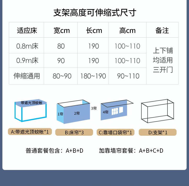 上下铺通用(无靠墙帘配全伸缩支架) | ¥100.00 |