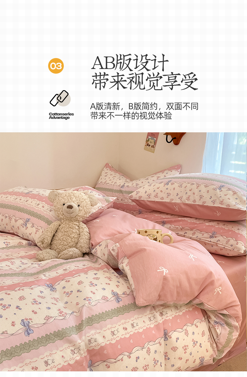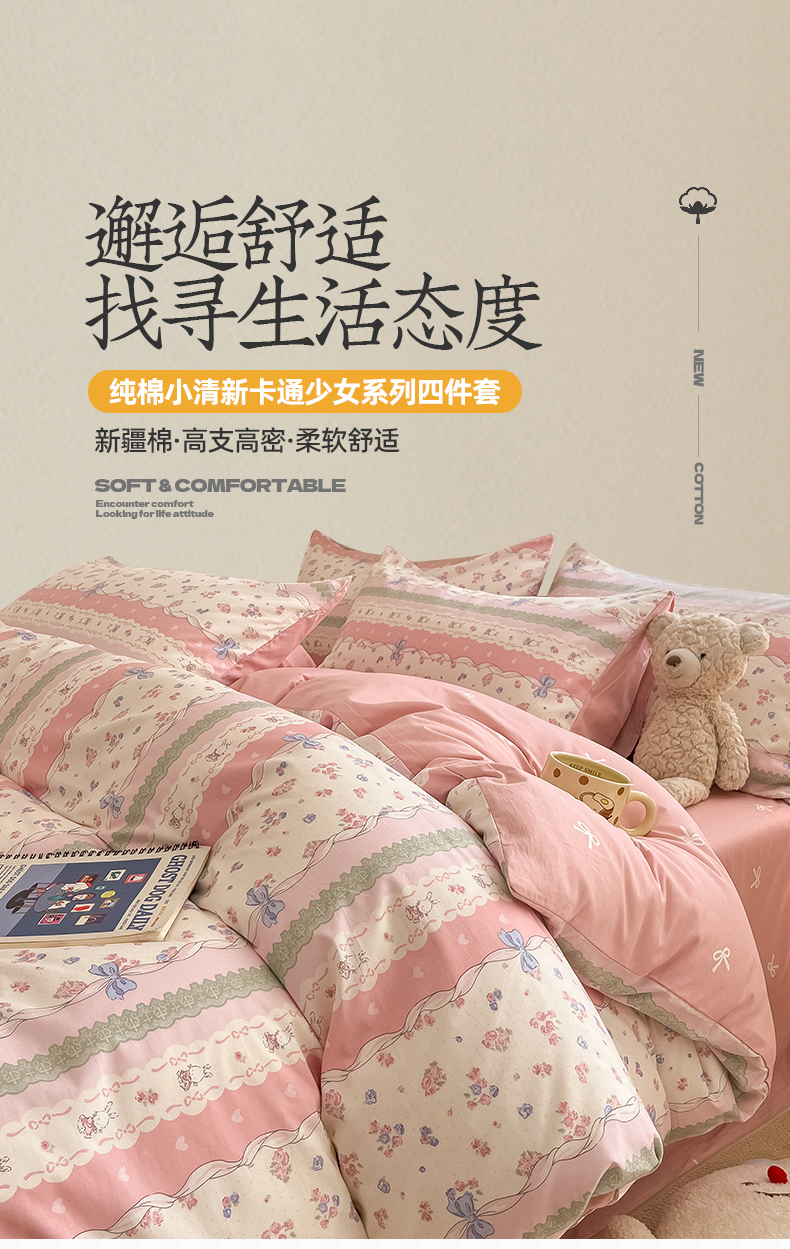 桃子家居 2024新款纯棉小清新卡通少女13372系列四件套 棉-茉莉兔