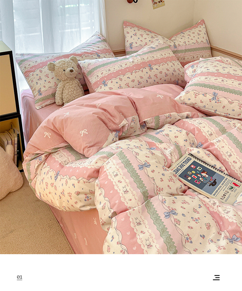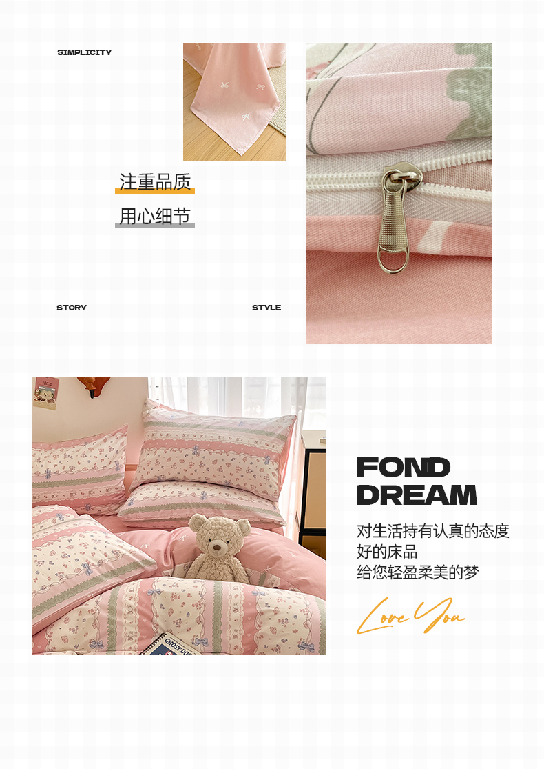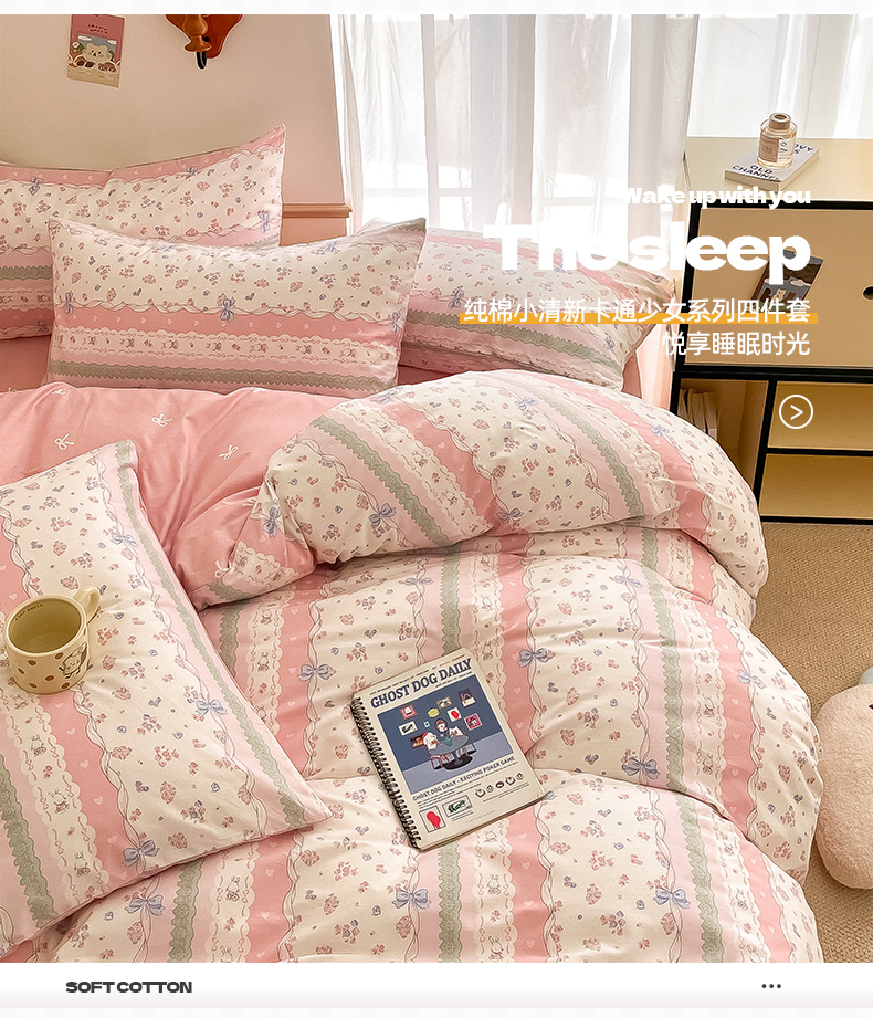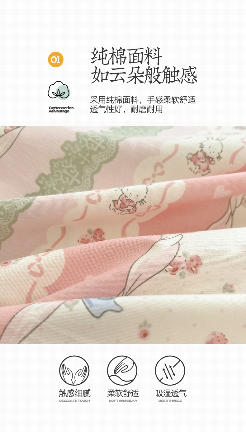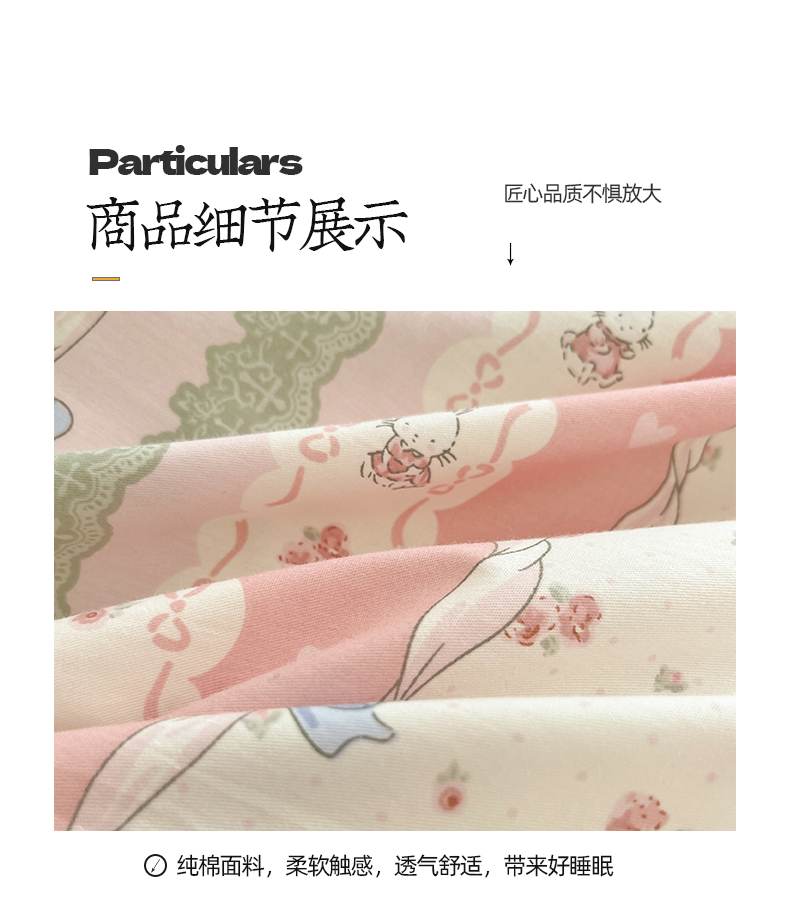 商品名称:桃子家居 2024新款纯棉小清新卡通少女13372系列四件套 棉-茉莉兔
