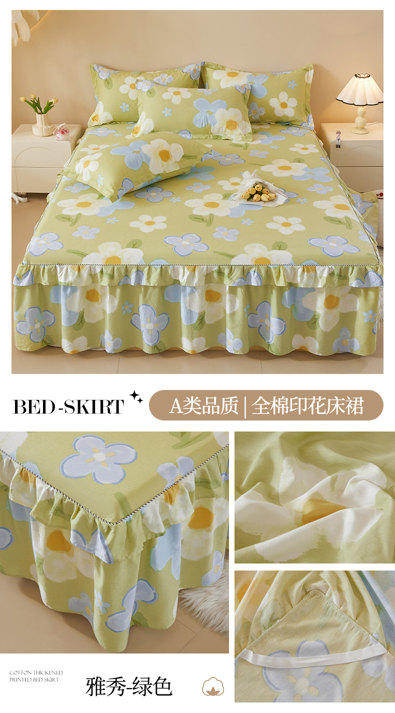 名优家纺 2024新款A类全棉印花床裙 雅秀-绿色