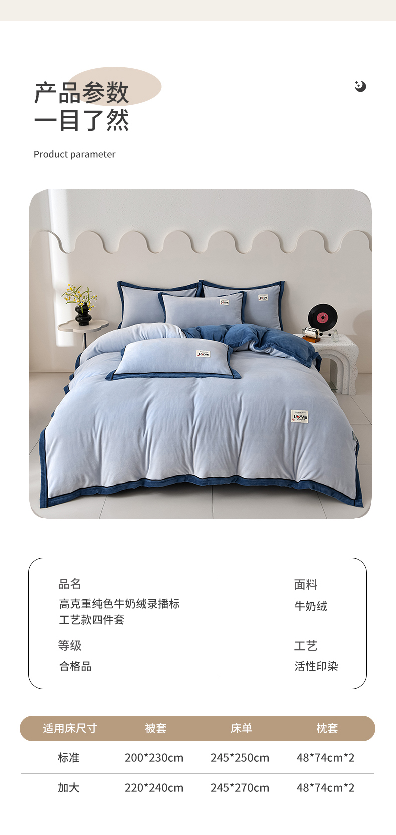 商品名称:(总)妮恒美家纺 2025新款高克重直播纯色牛奶绒宽边工艺款四件套