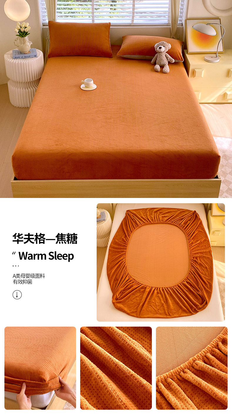 • 91家纺网 家纺一手货源 找家纺 莱米家纺 2024新款秋冬华夫格加密千鸟格牛奶绒床笠 华夫格-焦糖