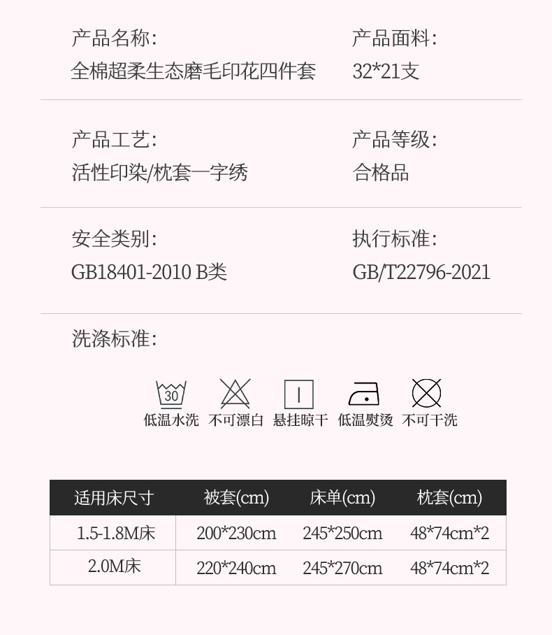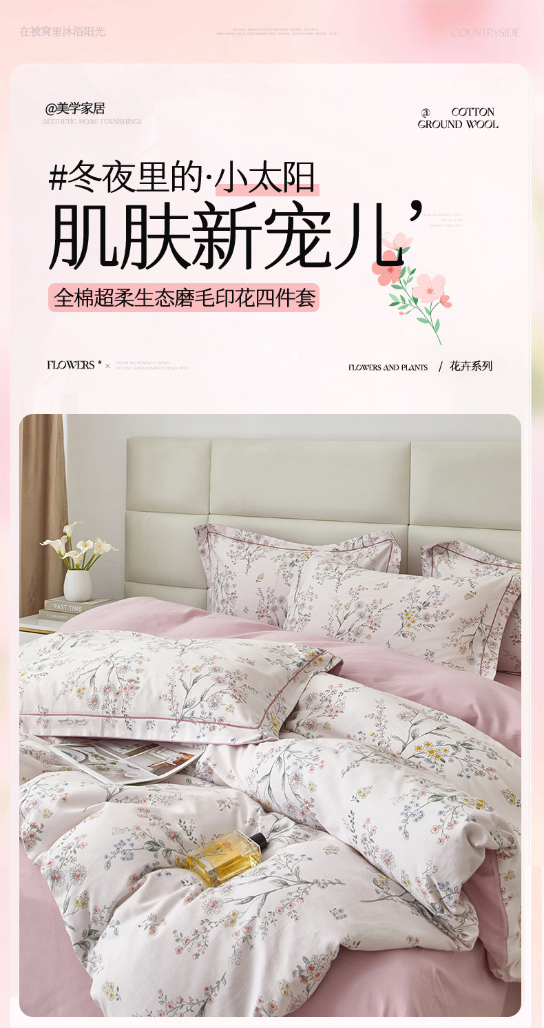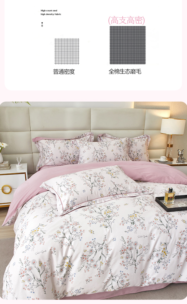 当前位置: 91家纺网 > 商品网购 > 床品套件 > 四件套 > 磨毛活性四件套 > 曼秀琳 2024新款全棉超柔生态磨毛四件套(32*21支) 静香-粉