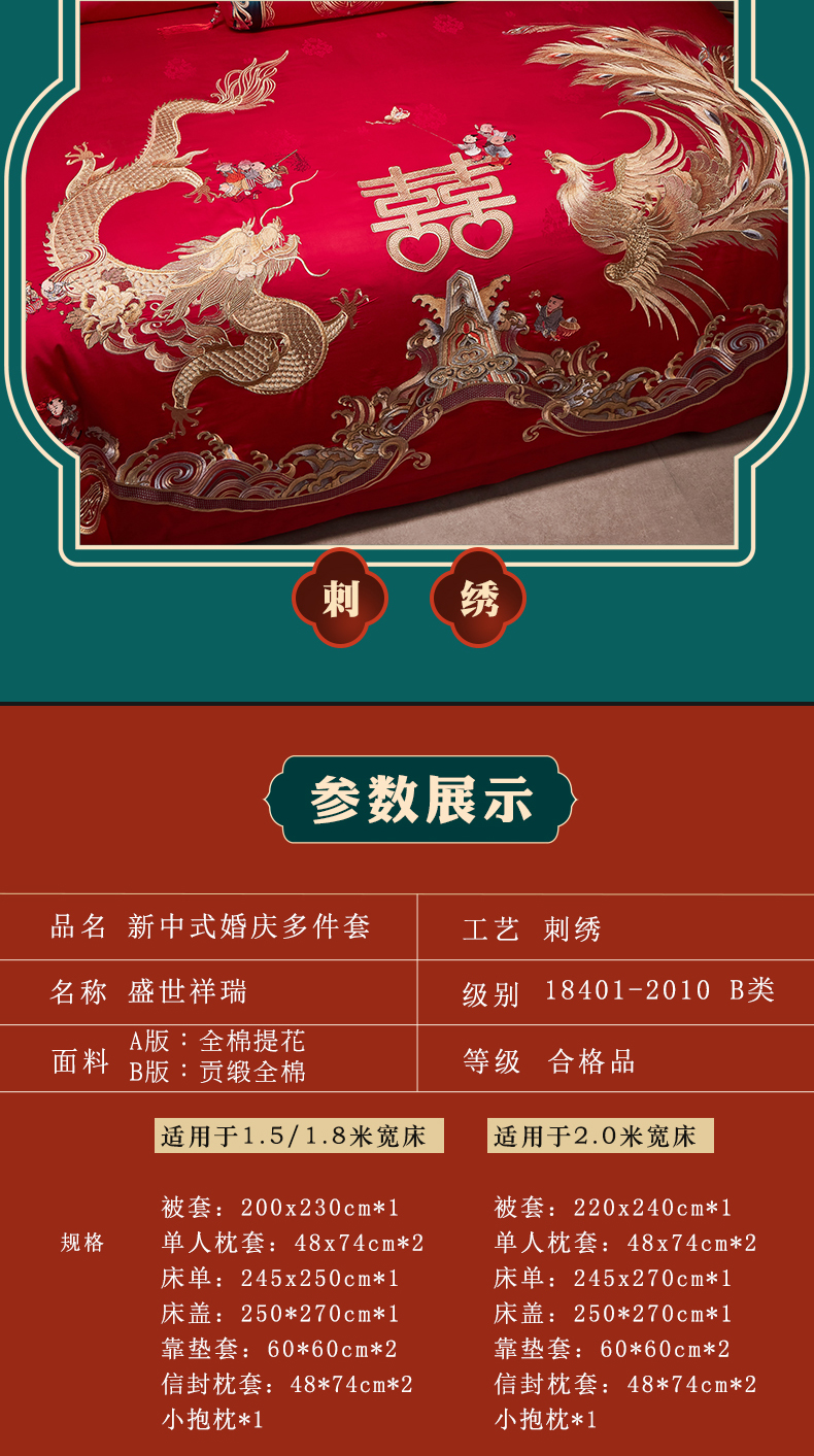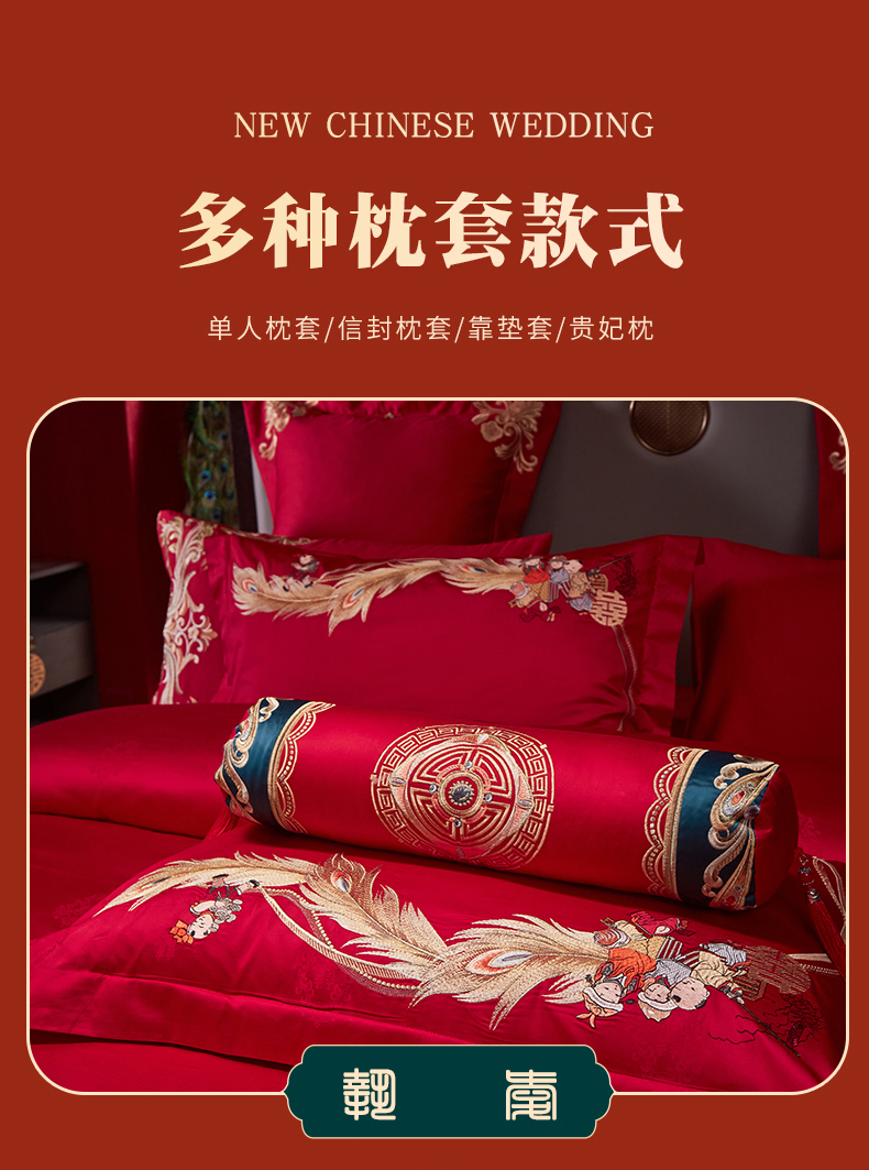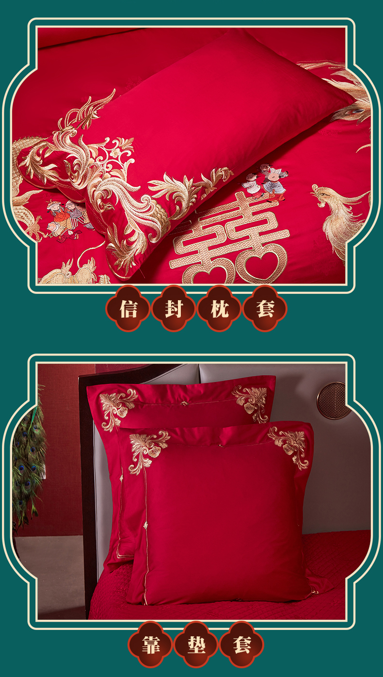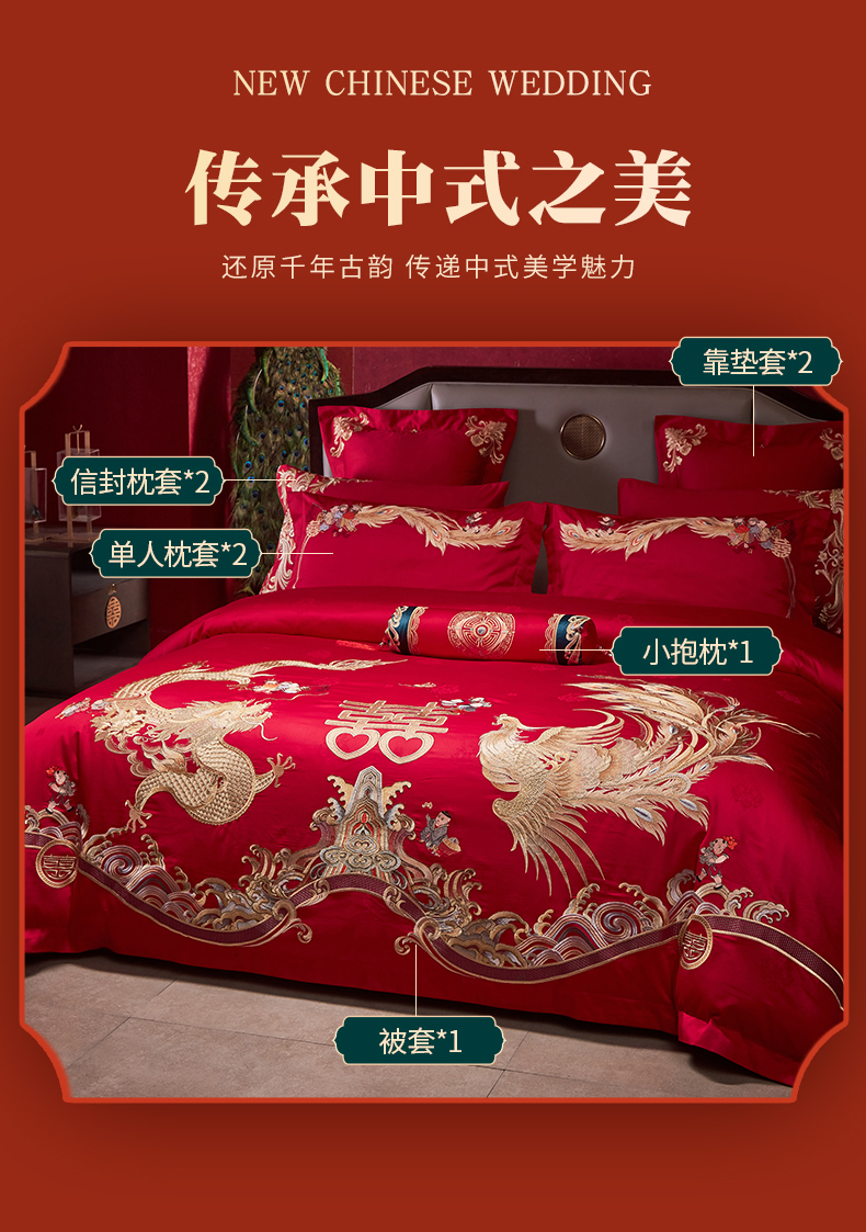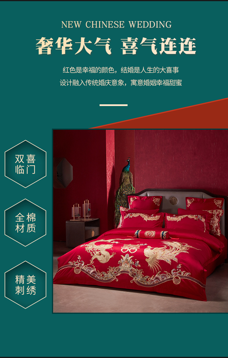 当前位置: 91家纺网 > 商品网购 > 床品套件 > 四件套 > 婚庆四件套 > 宏羽纺家纺 2024新款高支高密纯棉提花婚庆套件系列(控价680)盛世祥瑞