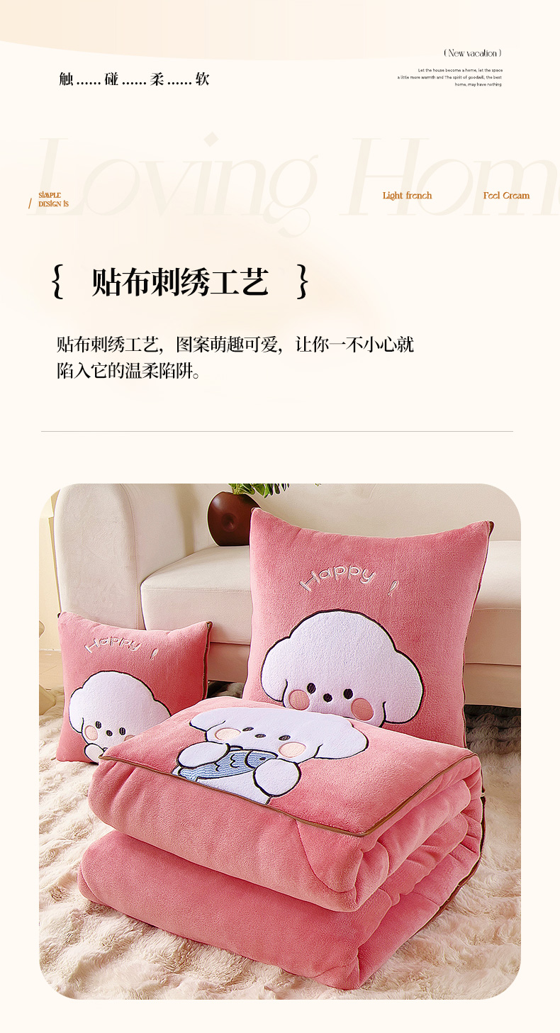 (总)阳光依佰抱枕被 2024新款纯棉刺绣多功能抱枕被-哈哈狗,哈哈狗-爱玛橙,哈哈狗-冰川蓝,哈哈狗-豆沙粉,哈哈狗-高级灰,哈哈狗-经典驼,哈哈狗-樱花粉