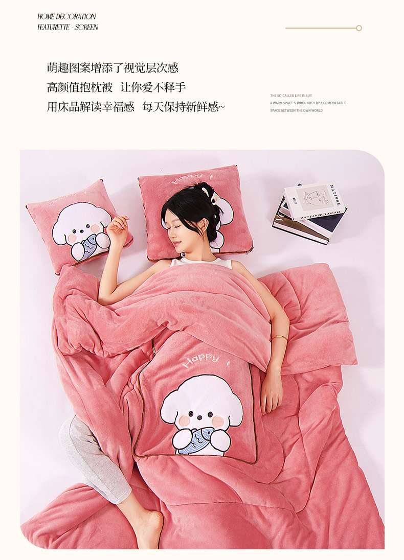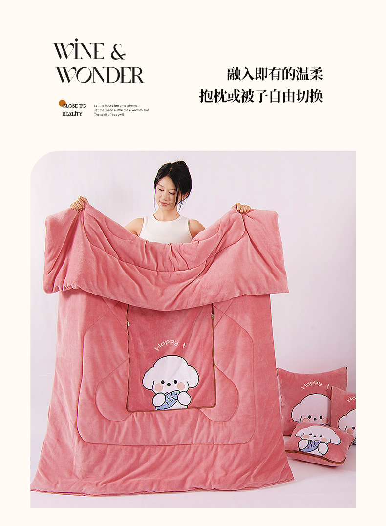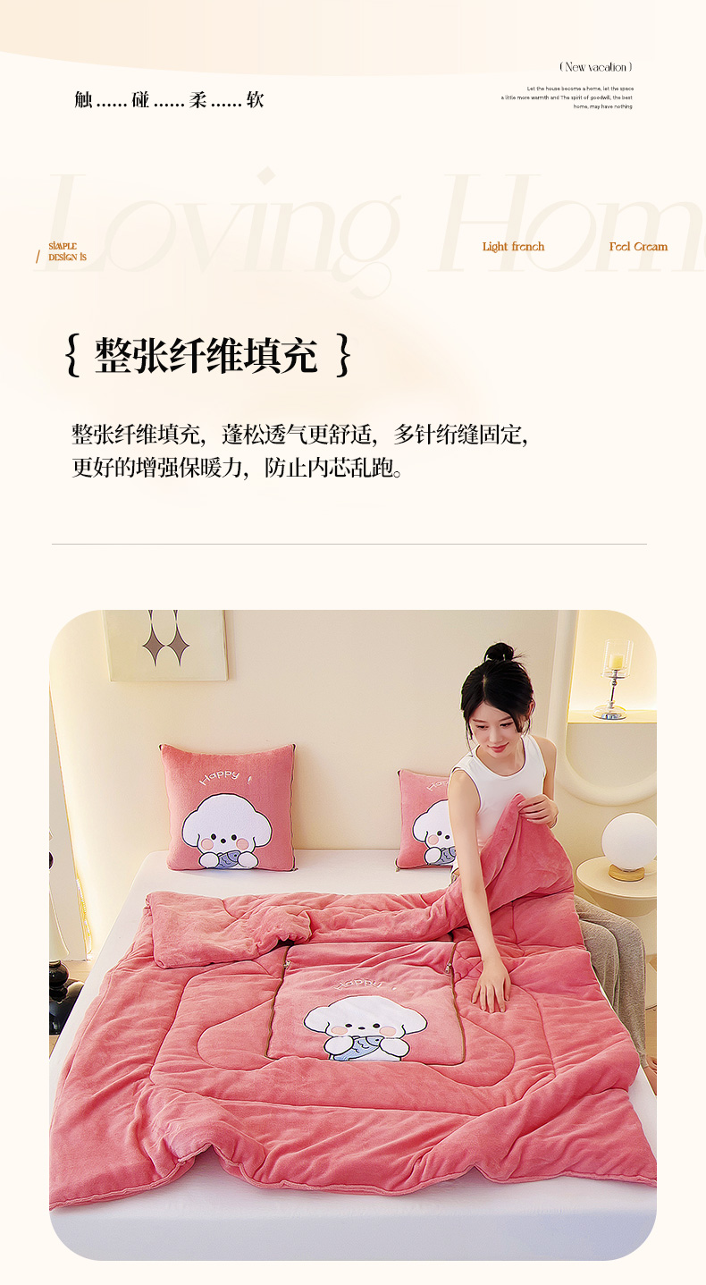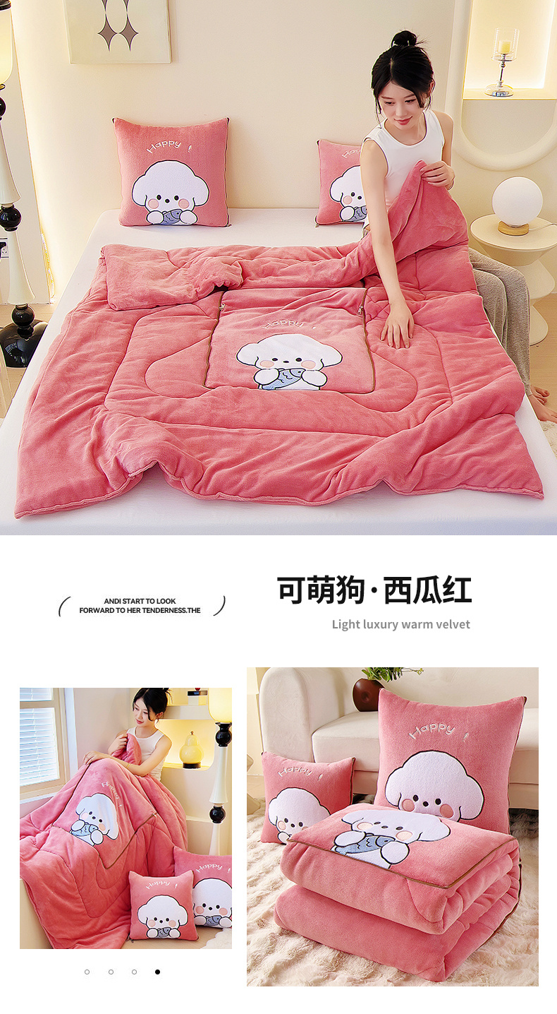 商品名称:阳光依佰抱枕被 2024秋冬新款牛奶绒可萌狗多功能抱枕被 可萌狗-西瓜红