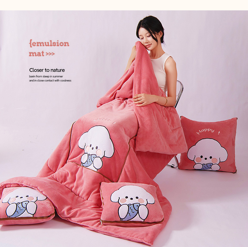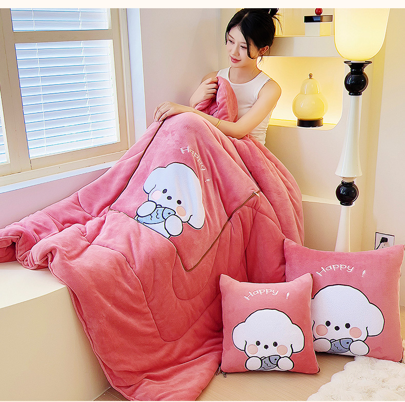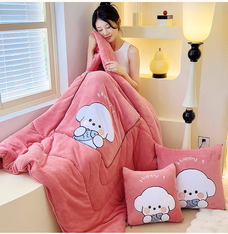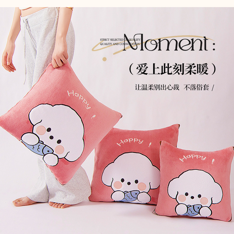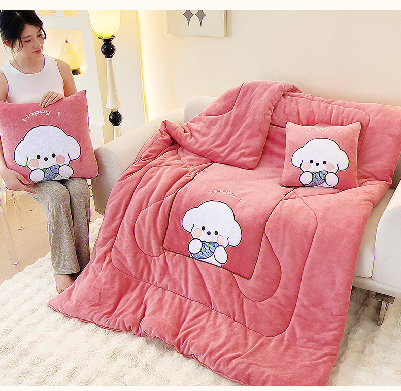 商品名称:阳光依佰抱枕被 2024秋冬新款牛奶绒可萌狗多功能抱枕被 可萌狗-西瓜红