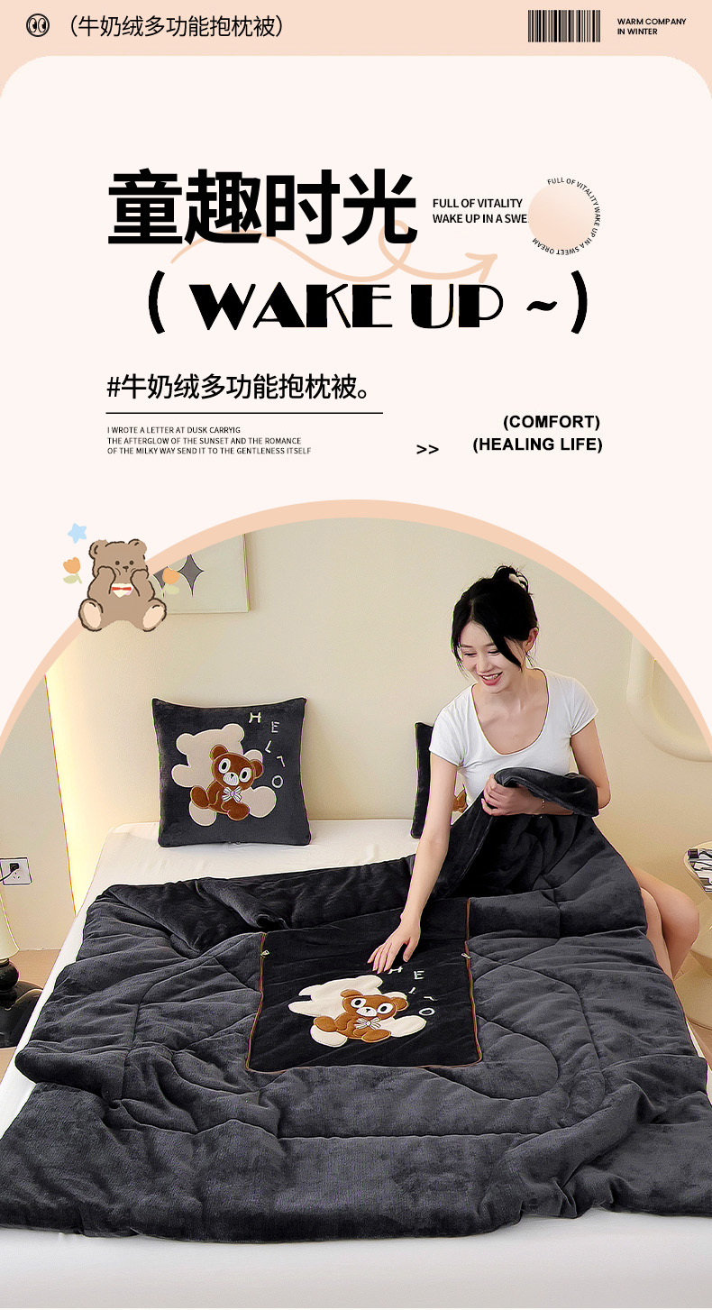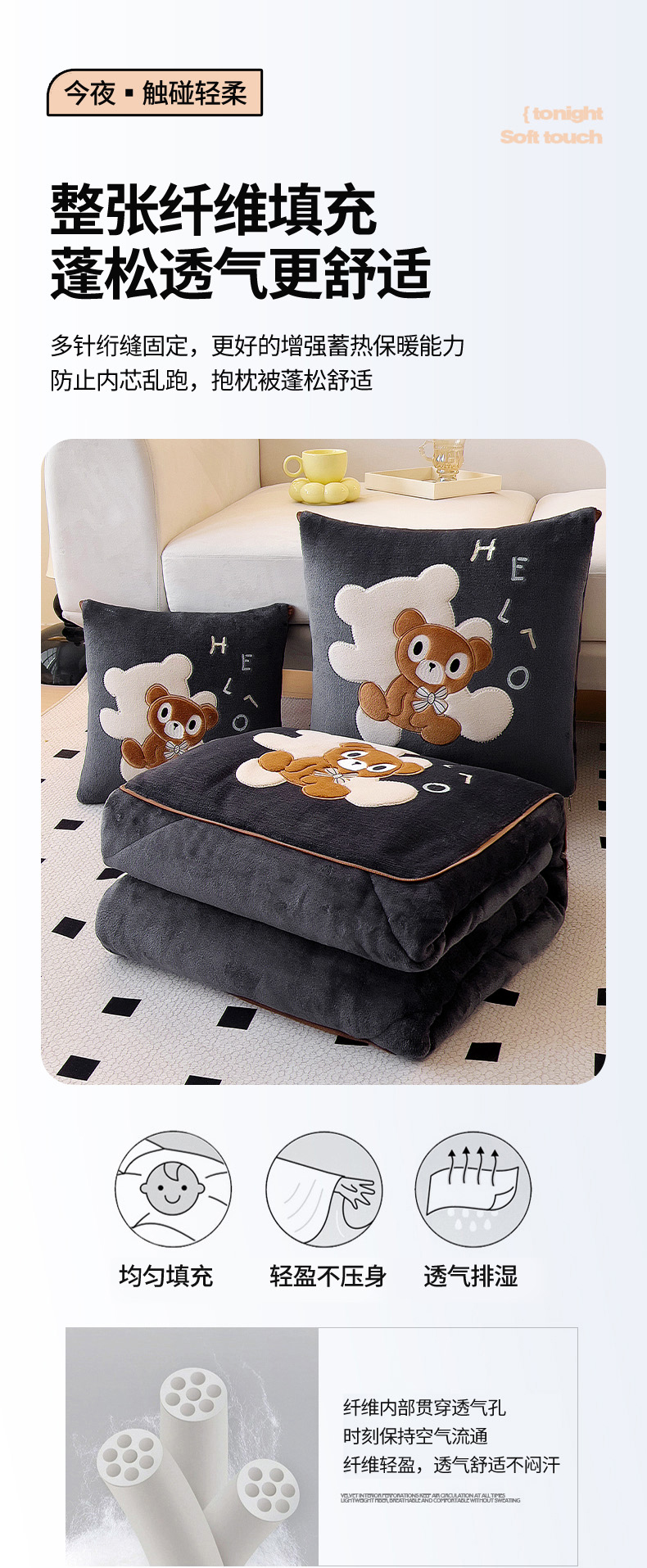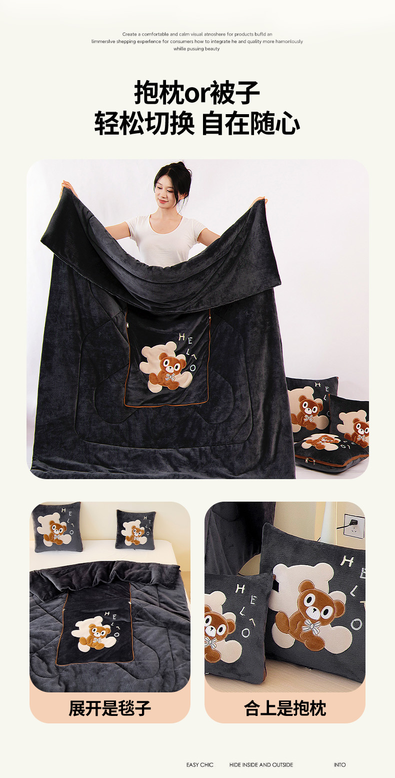 阳光依佰抱枕被 2024秋冬新款牛奶绒绅士小熊多功能抱枕被 绅士小熊-深灰色