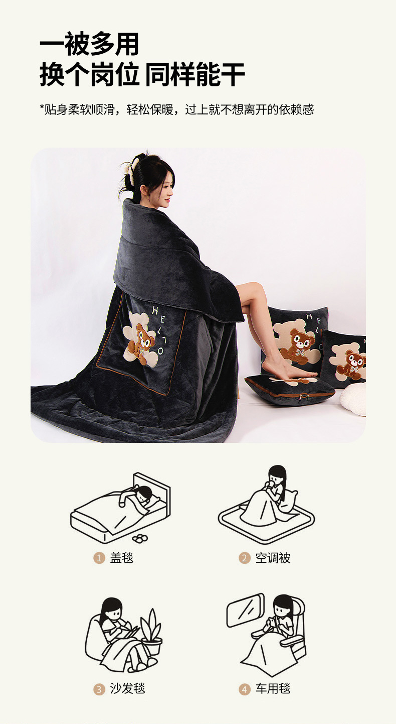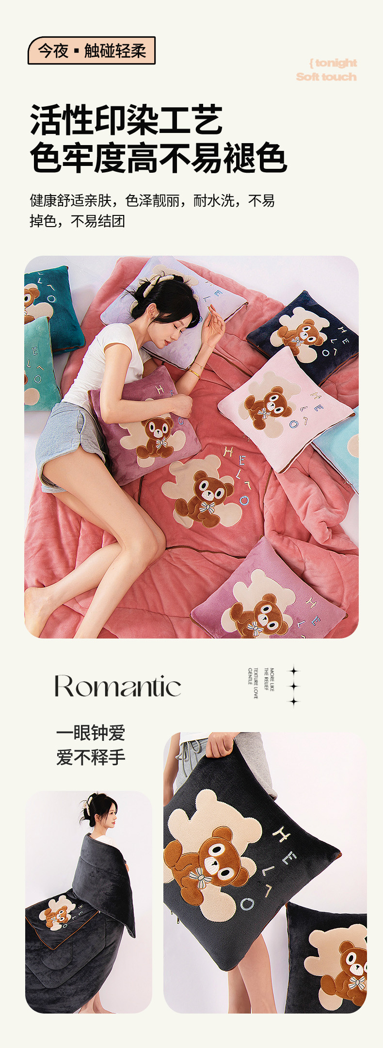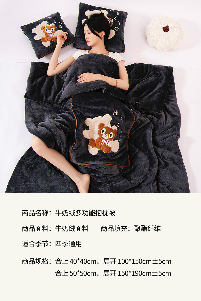 阳光依佰抱枕被 2024秋冬新款牛奶绒绅士小熊多功能抱枕被 绅士小熊-深灰色