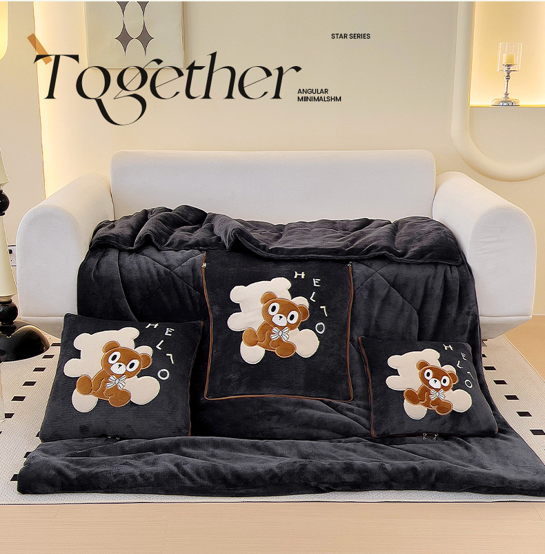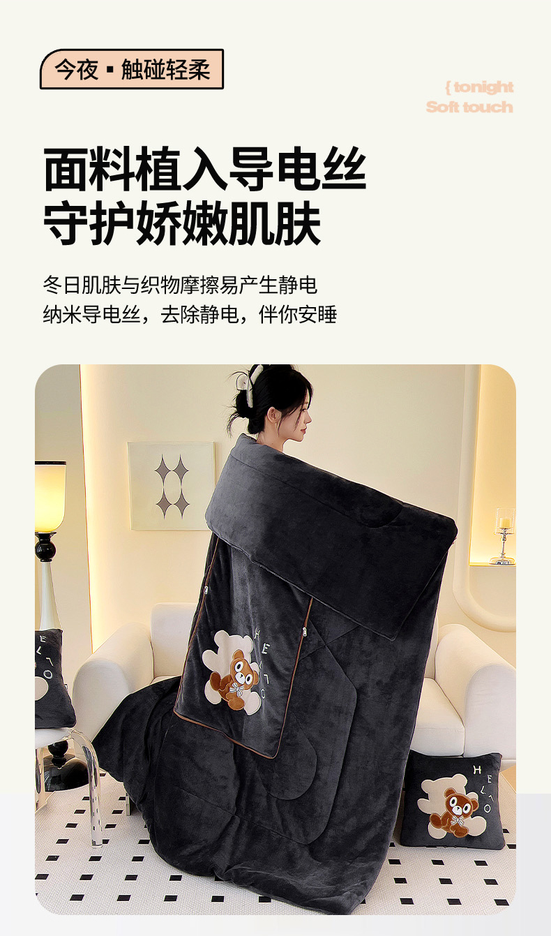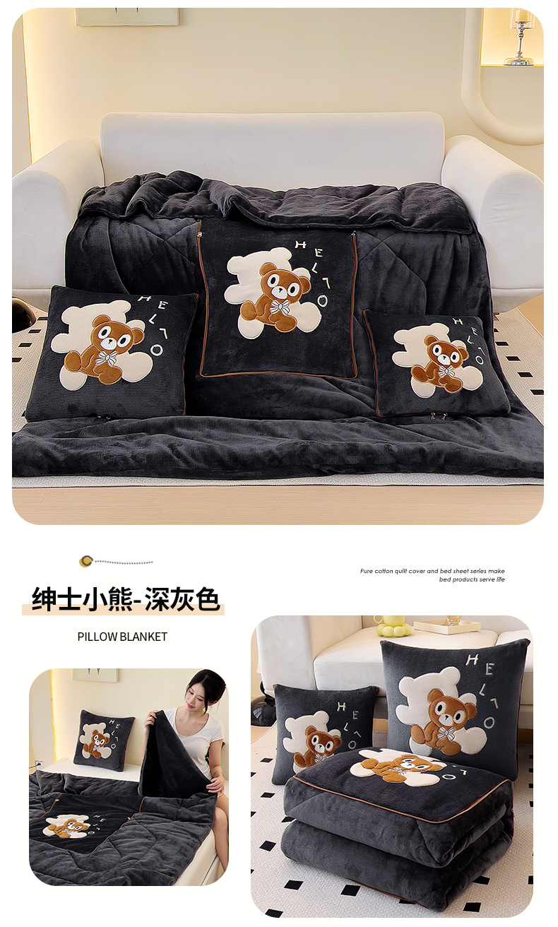 商品名称:阳光依佰抱枕被 2024秋冬新款牛奶绒绅士小熊多功能抱枕被 绅士小熊-深灰色