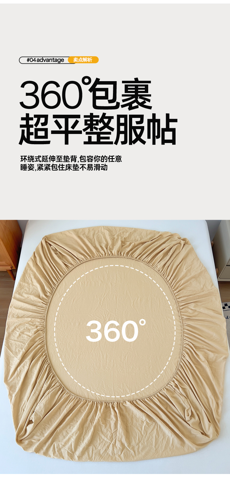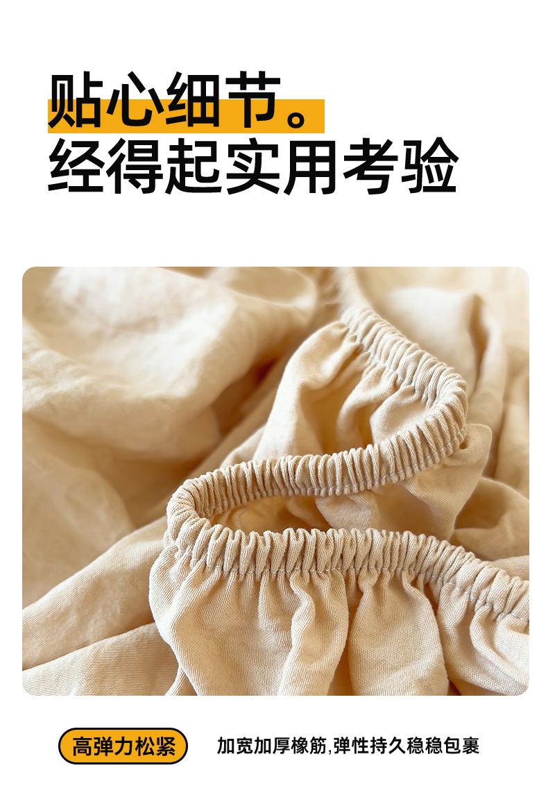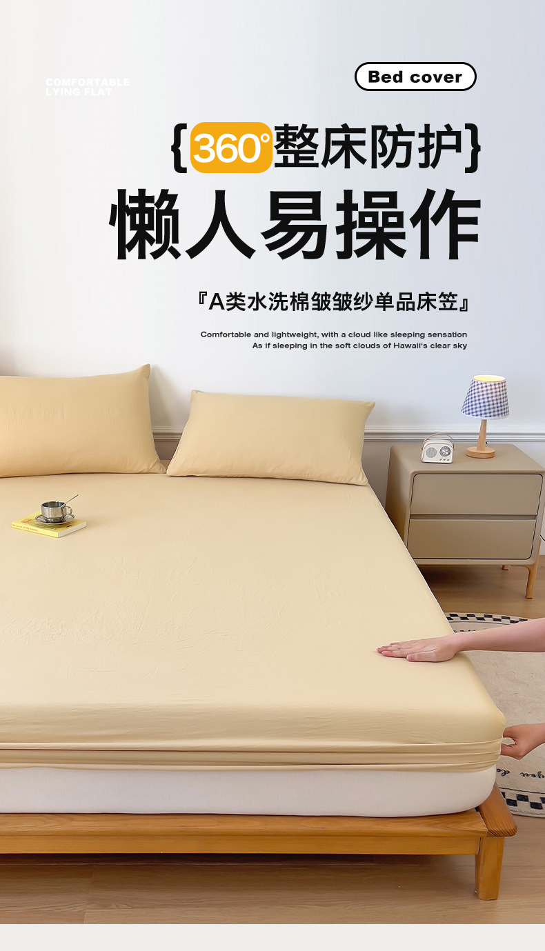• 91家纺网 家纺一手货源 找家纺 多品 2024新款水洗棉皱皱纱单品床笠 杏黄