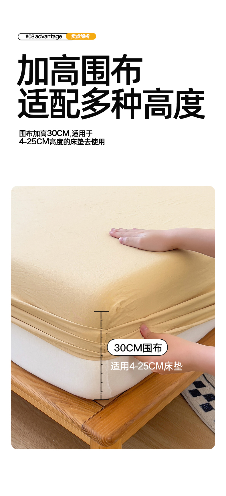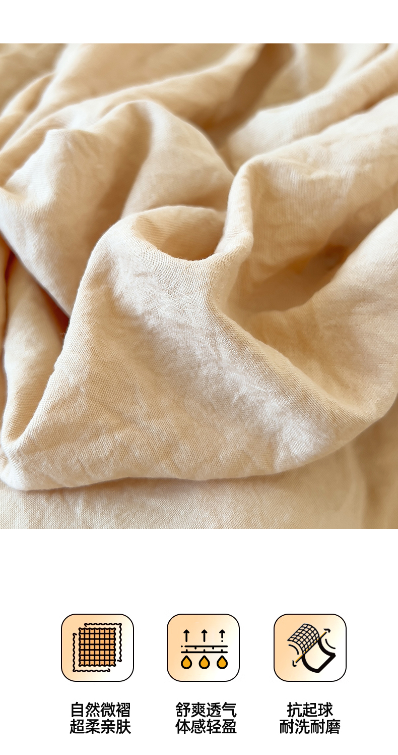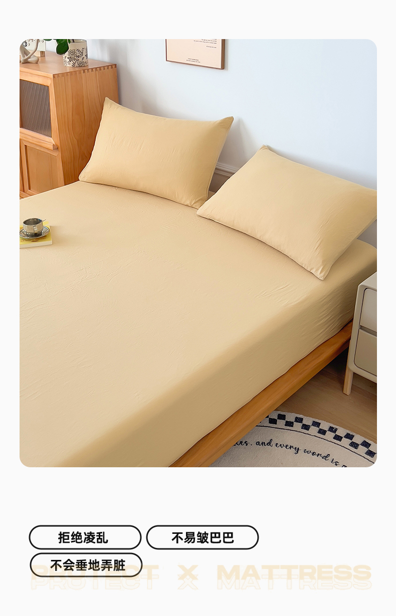 多品 2024新款水洗棉皱皱纱单品床笠 杏黄