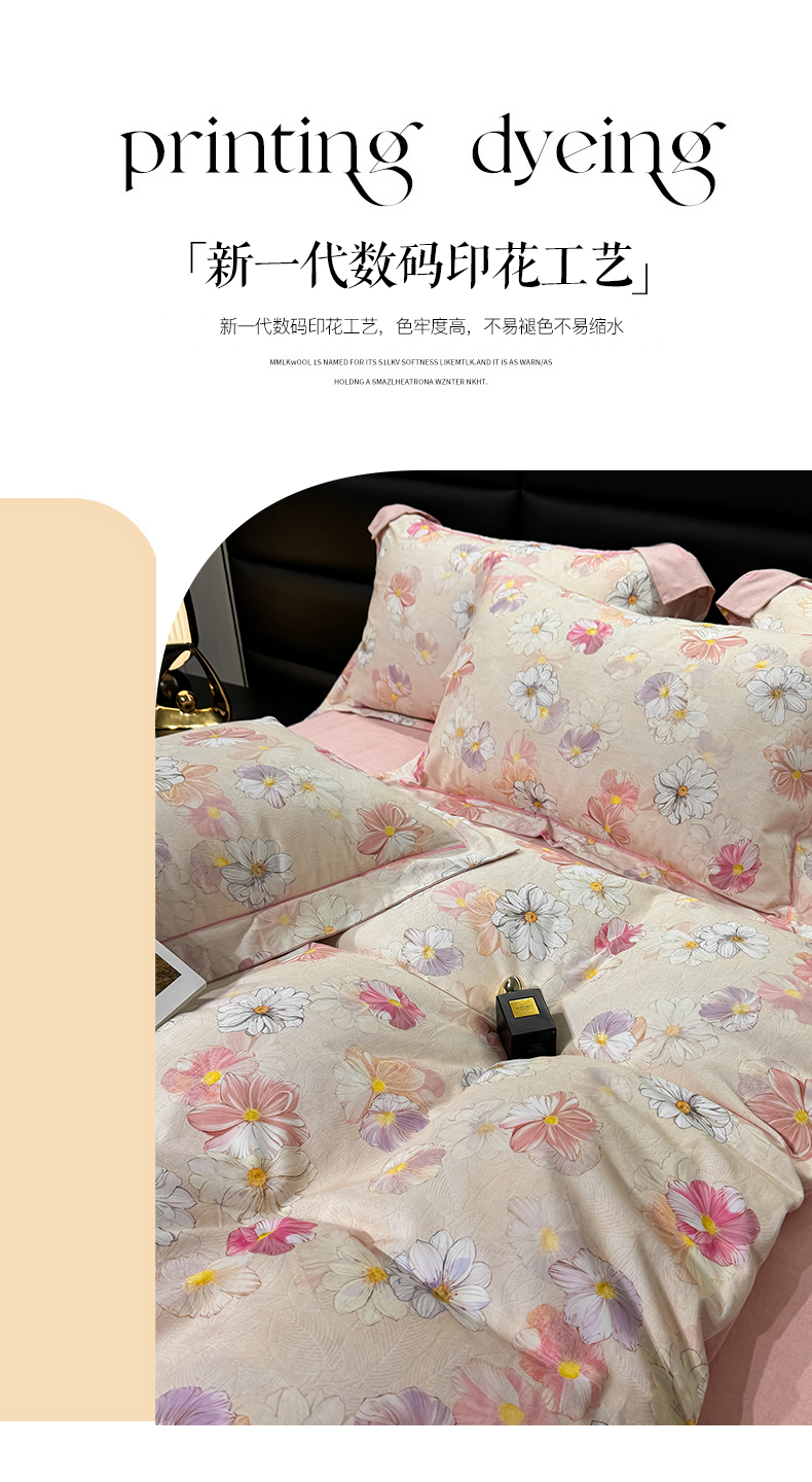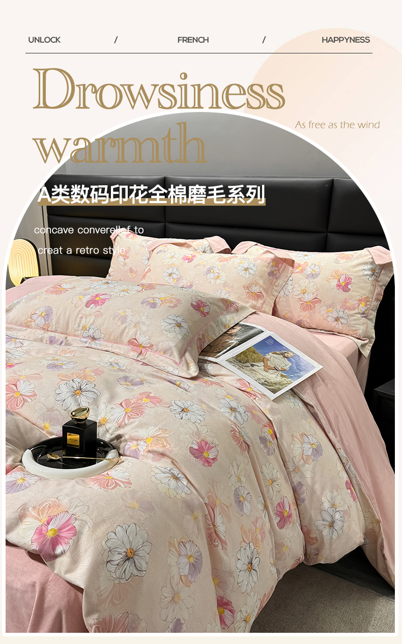 当前位置: 91家纺网 > 商品网购 > 床品套件 > 四件套 > 全棉普通四件套 > 2024新款A类全棉磨毛数码印花系列四件套 双花飘香