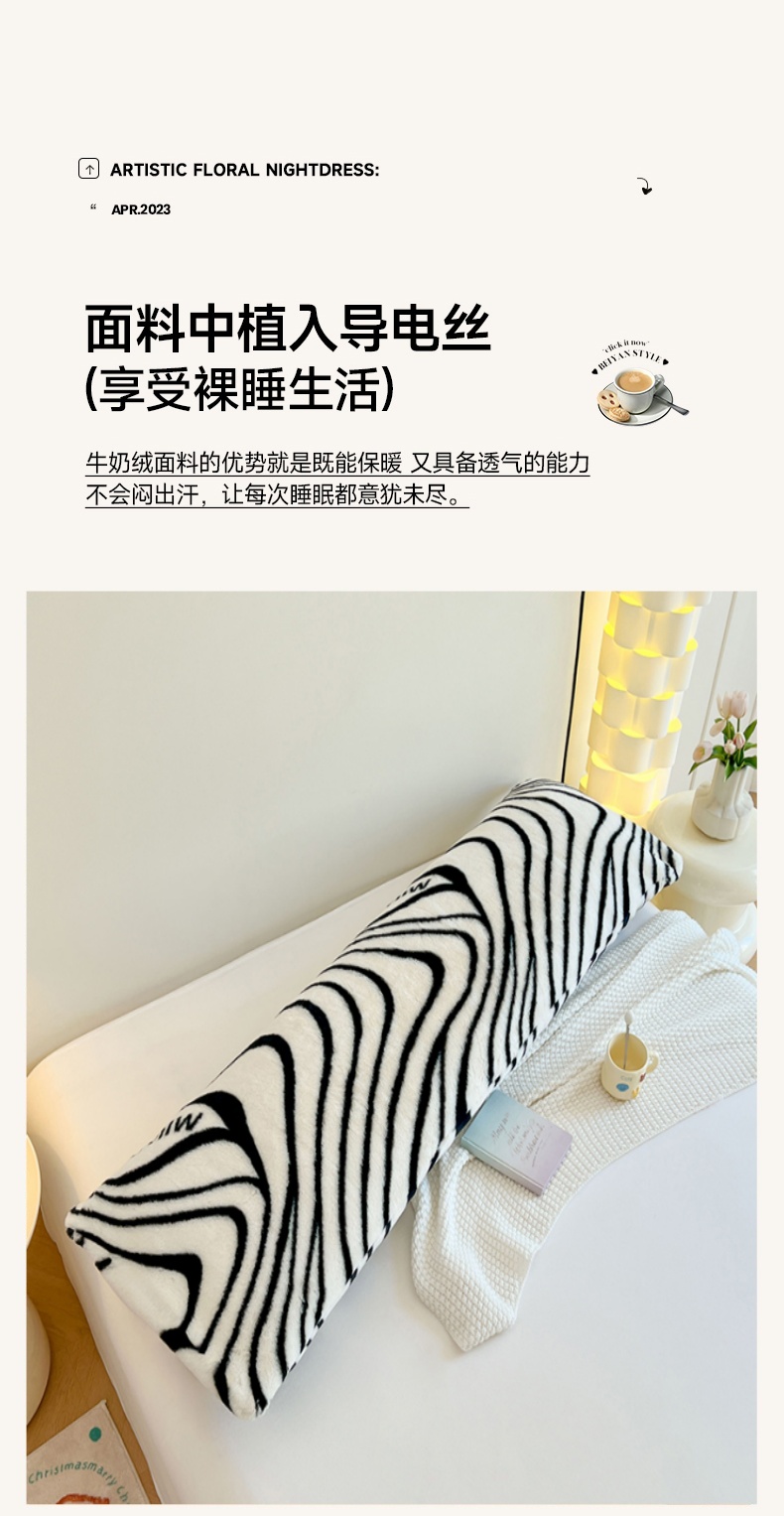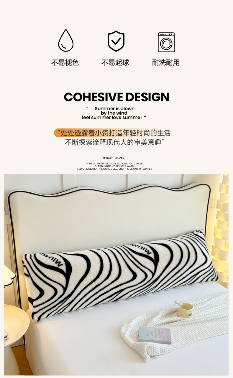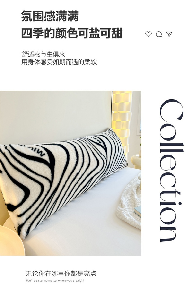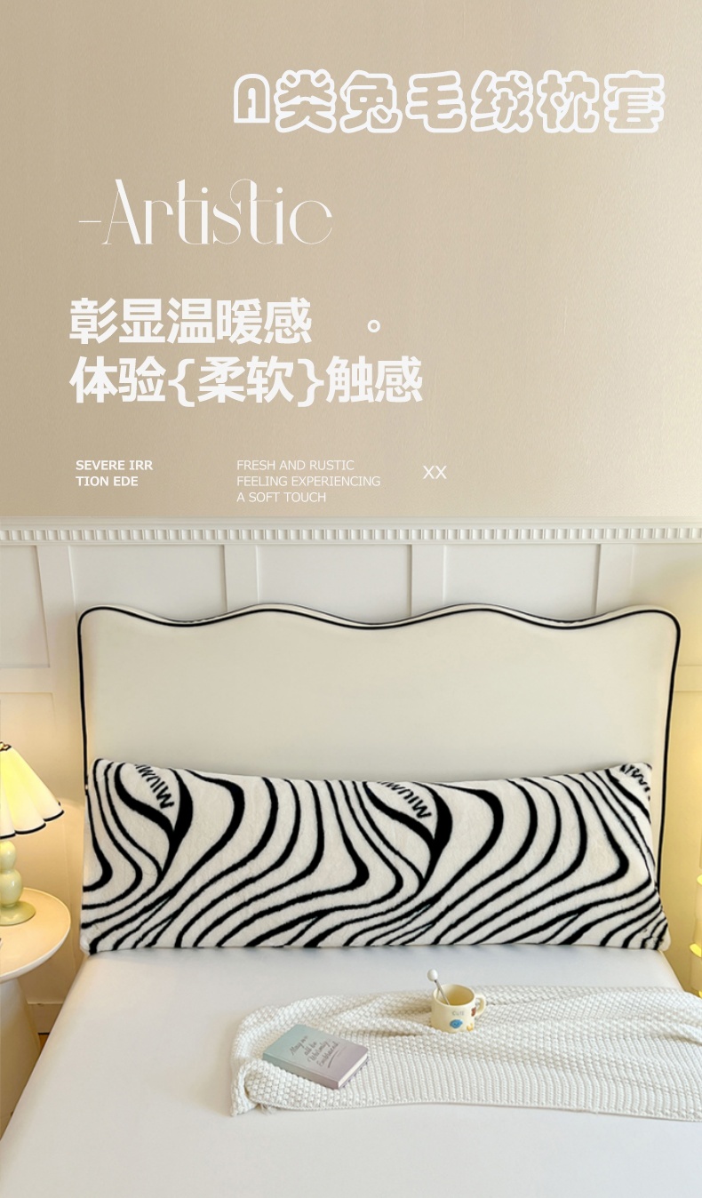商品名称:梦舒羽 2025新款兔毛绒印花双人枕套牛奶绒加长枕芯套雪花绒枕头套艺术线条