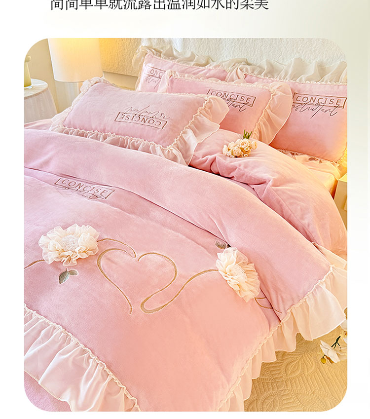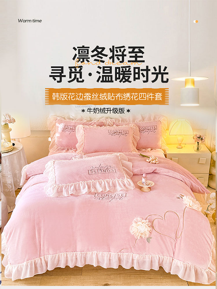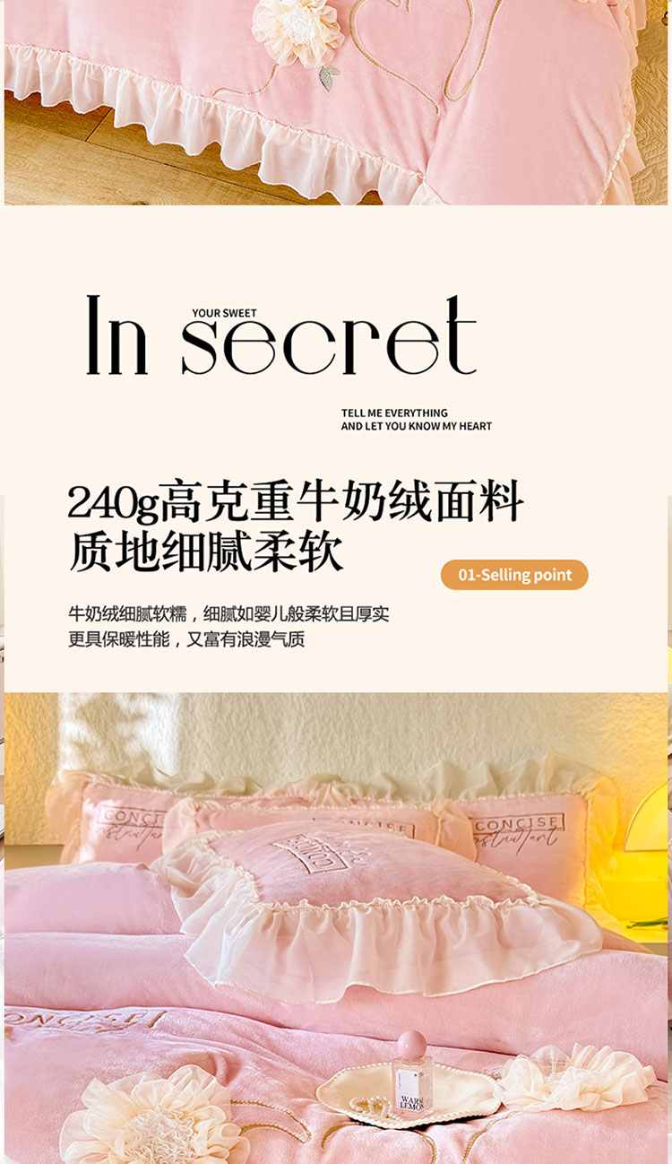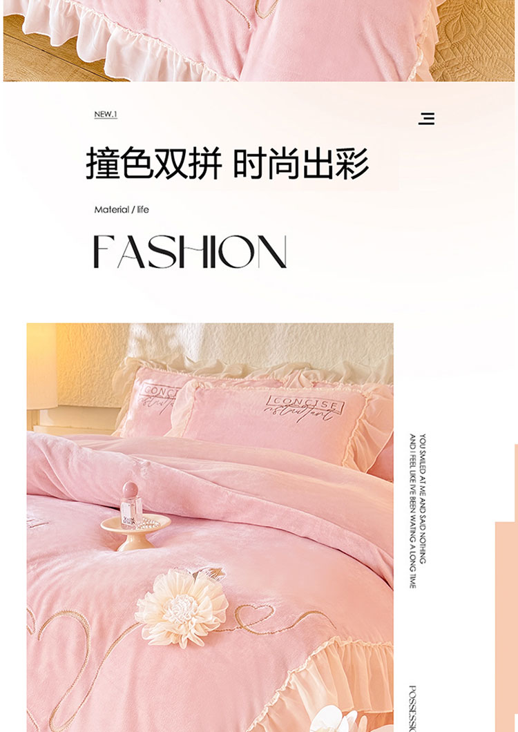 (总)2025秋冬新款230g法式公主粉少女心牛奶绒四件套法莱绒金貂绒兔兔绒牛奶绒床裙款四件套绒床盖款四件套