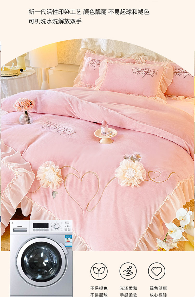 商品名称:(总)2025秋冬新款230g法式公主粉少女心牛奶绒四件套法莱绒金貂绒兔兔绒牛奶绒床裙款四件套绒床盖款四件套