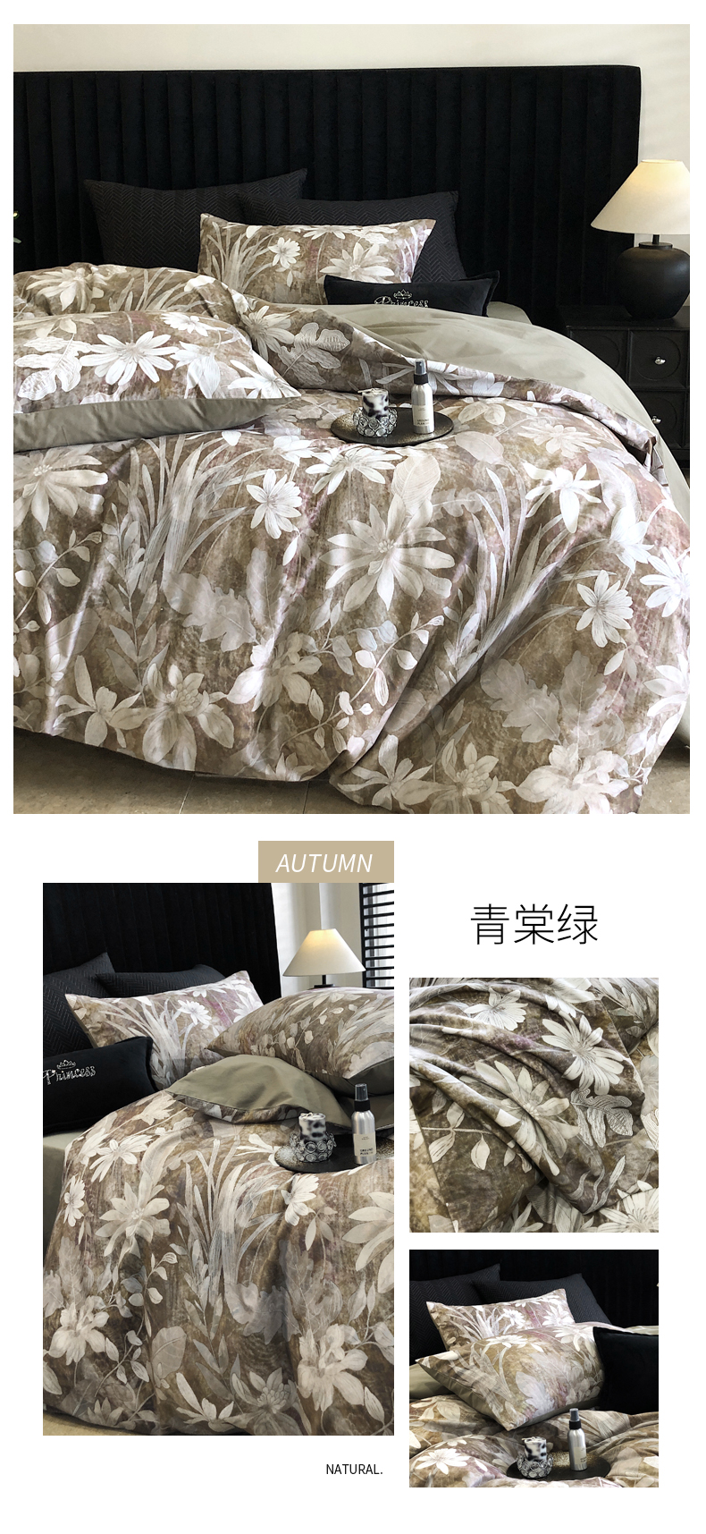 商品名称:立奥被业 2024新款全棉高密磨毛数码印花四件套 青棠绿
