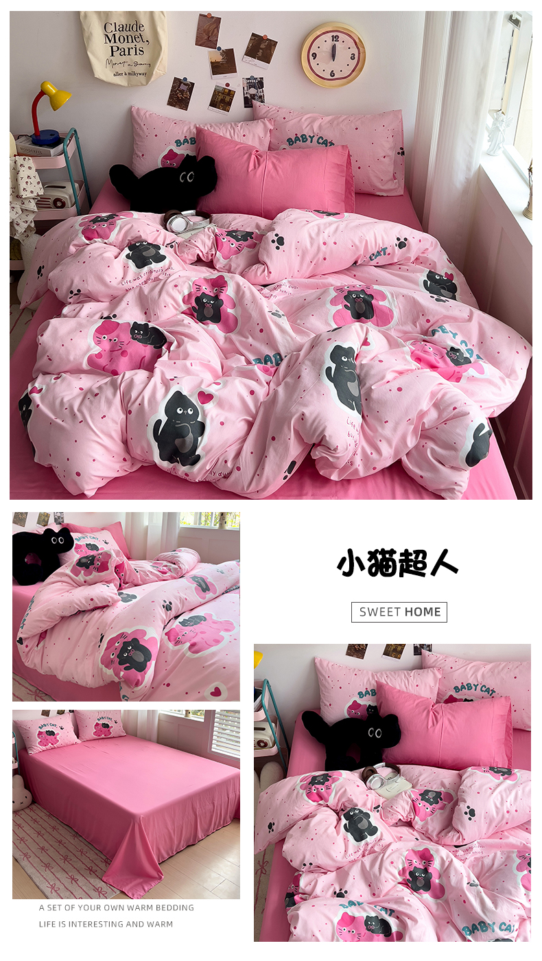 当前位置: 91家纺网 > 商品网购 > 床品套件 > 四件套 > 水洗棉四件套 > 星巴k家纺 2024新款A类超柔水洗棉印花四件套 小猫超人