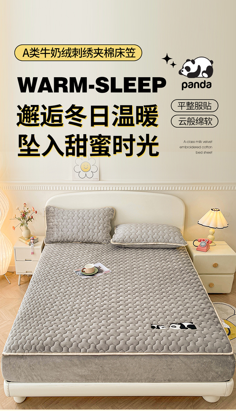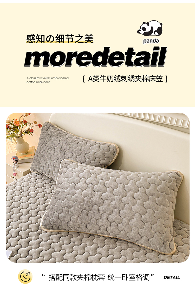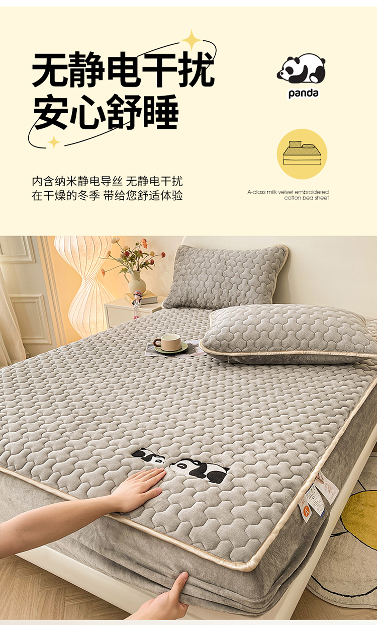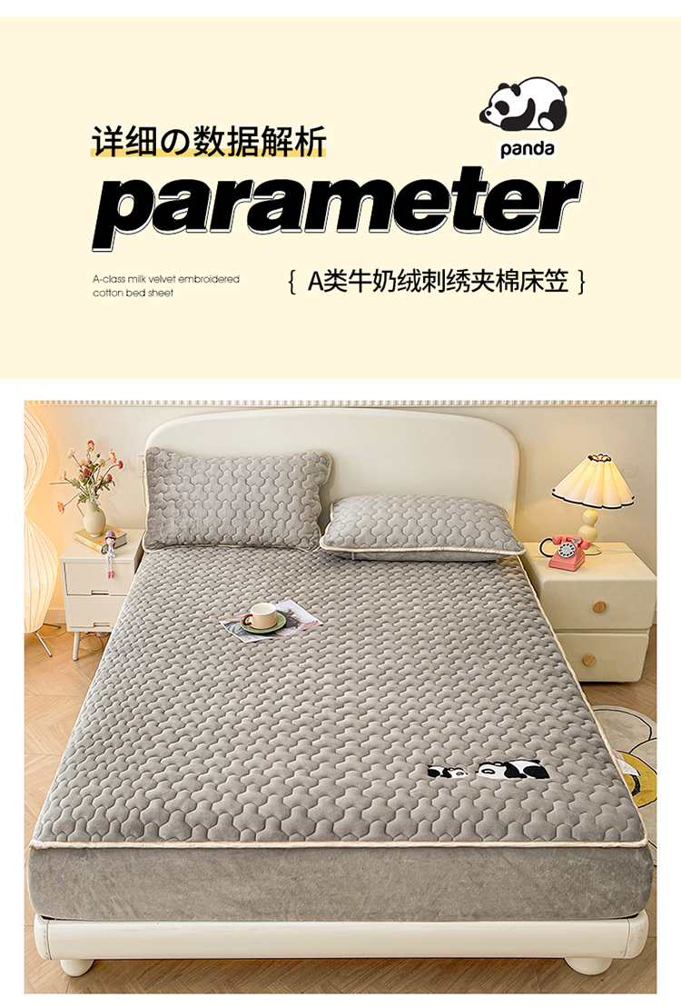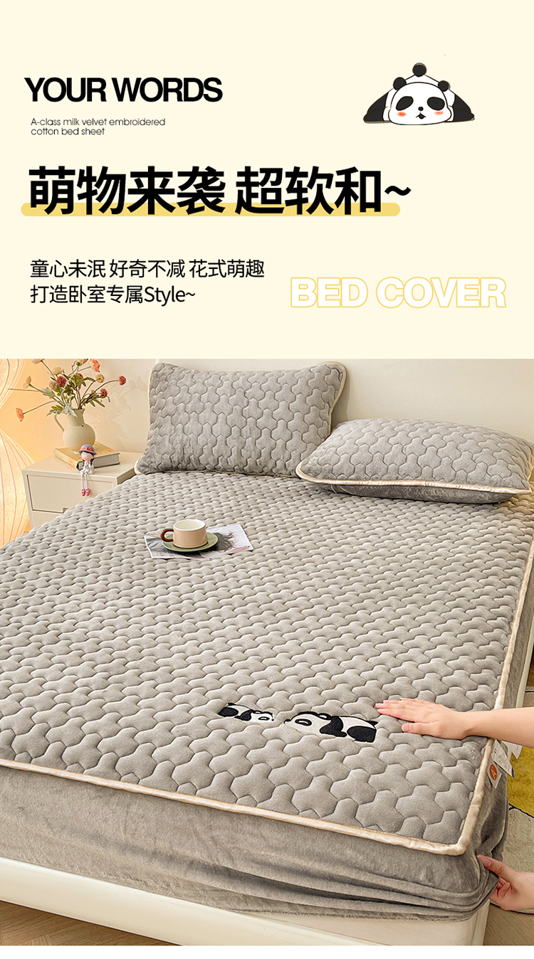 • 91家纺网 家纺一手货源 找家纺 2024新款A类牛奶绒刺绣夹棉床笠-小熊猫 小熊猫-星辰灰