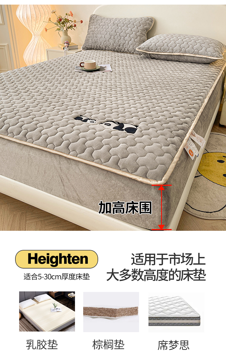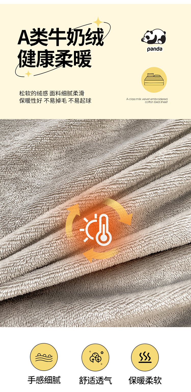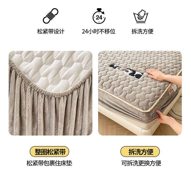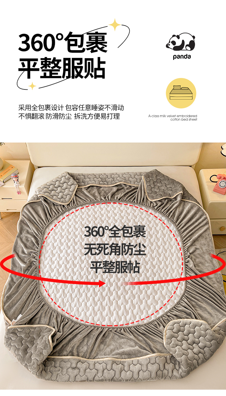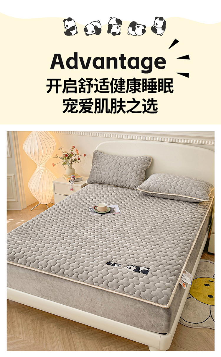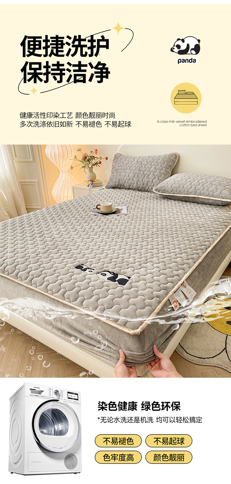 • 91家纺网 家纺一手货源 找家纺 2024新款A类牛奶绒刺绣夹棉床笠-小熊猫 小熊猫-星辰灰