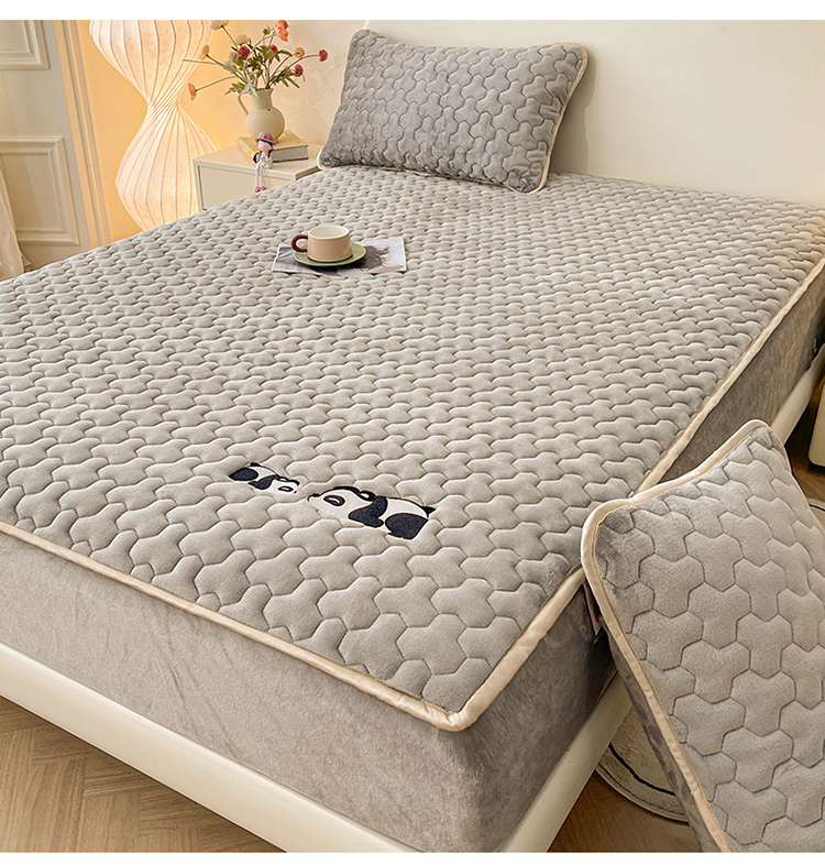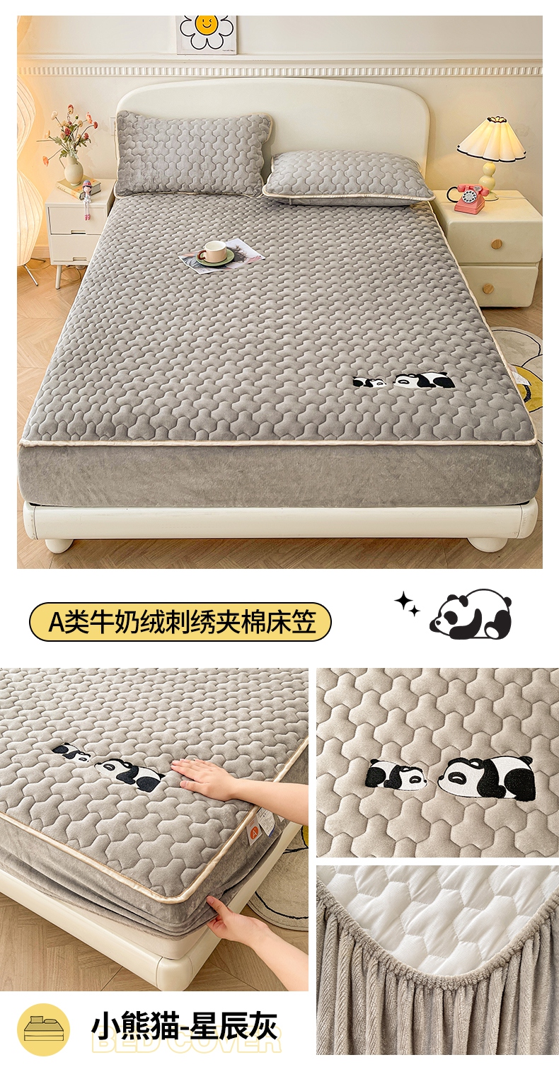 2024新款A类牛奶绒刺绣夹棉床笠-小熊猫 小熊猫-星辰灰