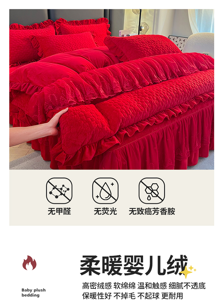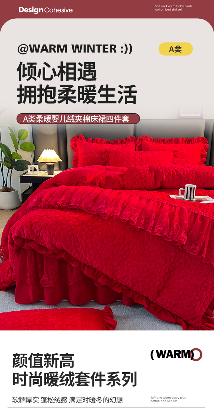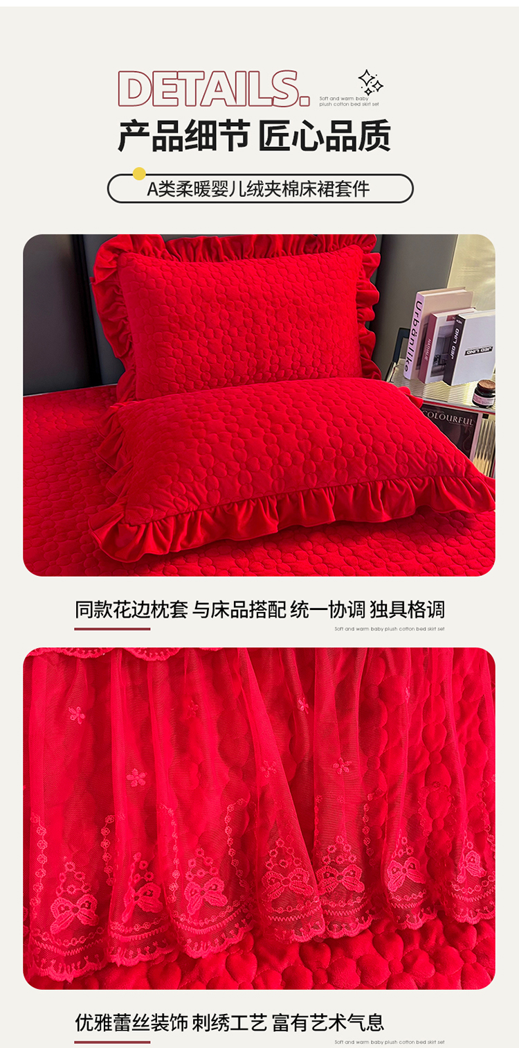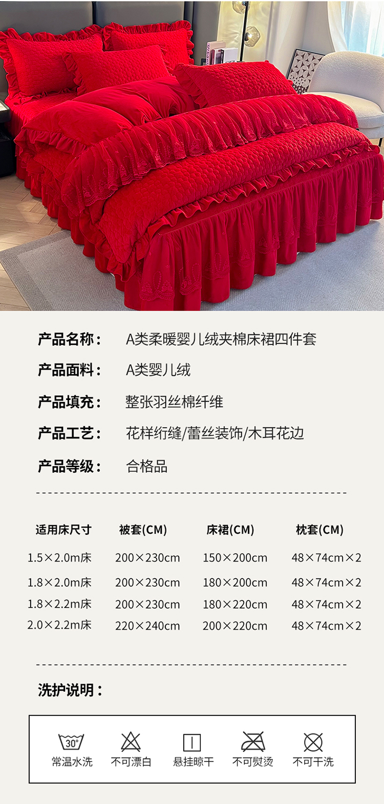 当前位置: 91家纺网 > 商品网购 > 床品套件 > 四件套 > 其它四件套 > 2024新款A类柔暖婴儿绒夹棉床裙四件套-倾世温柔 倾世温柔 大红