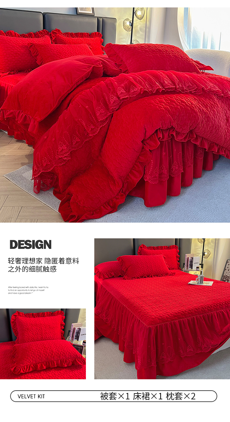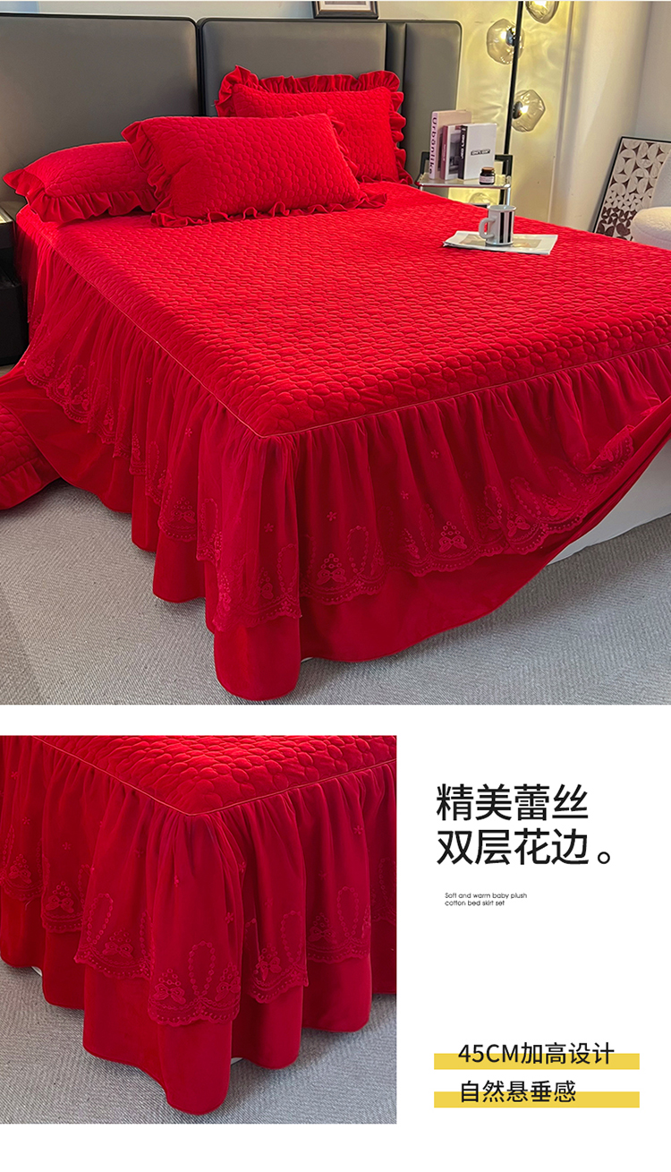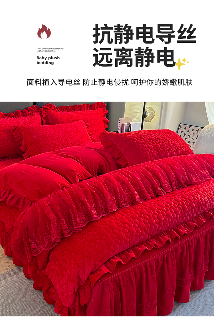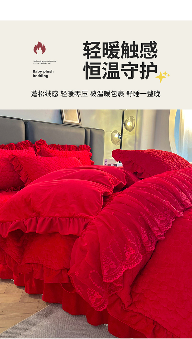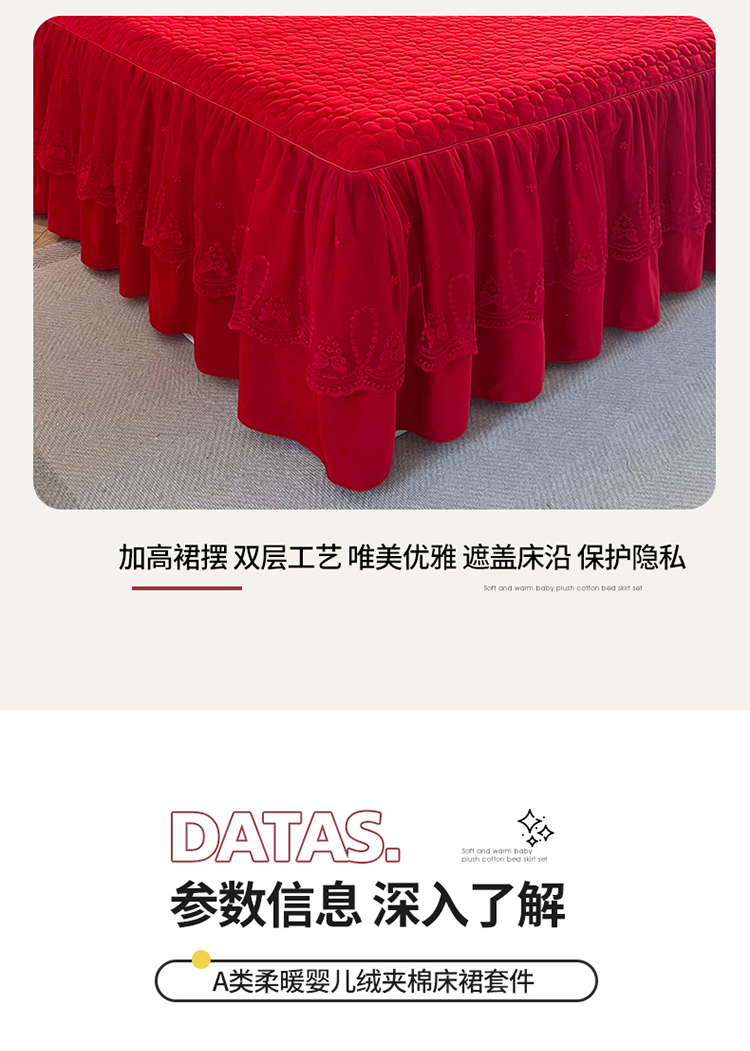 当前位置: 91家纺网 > 商品网购 > 床品套件 > 四件套 > 其它四件套 > 2024新款A类柔暖婴儿绒夹棉床裙四件套-倾世温柔 倾世温柔 大红