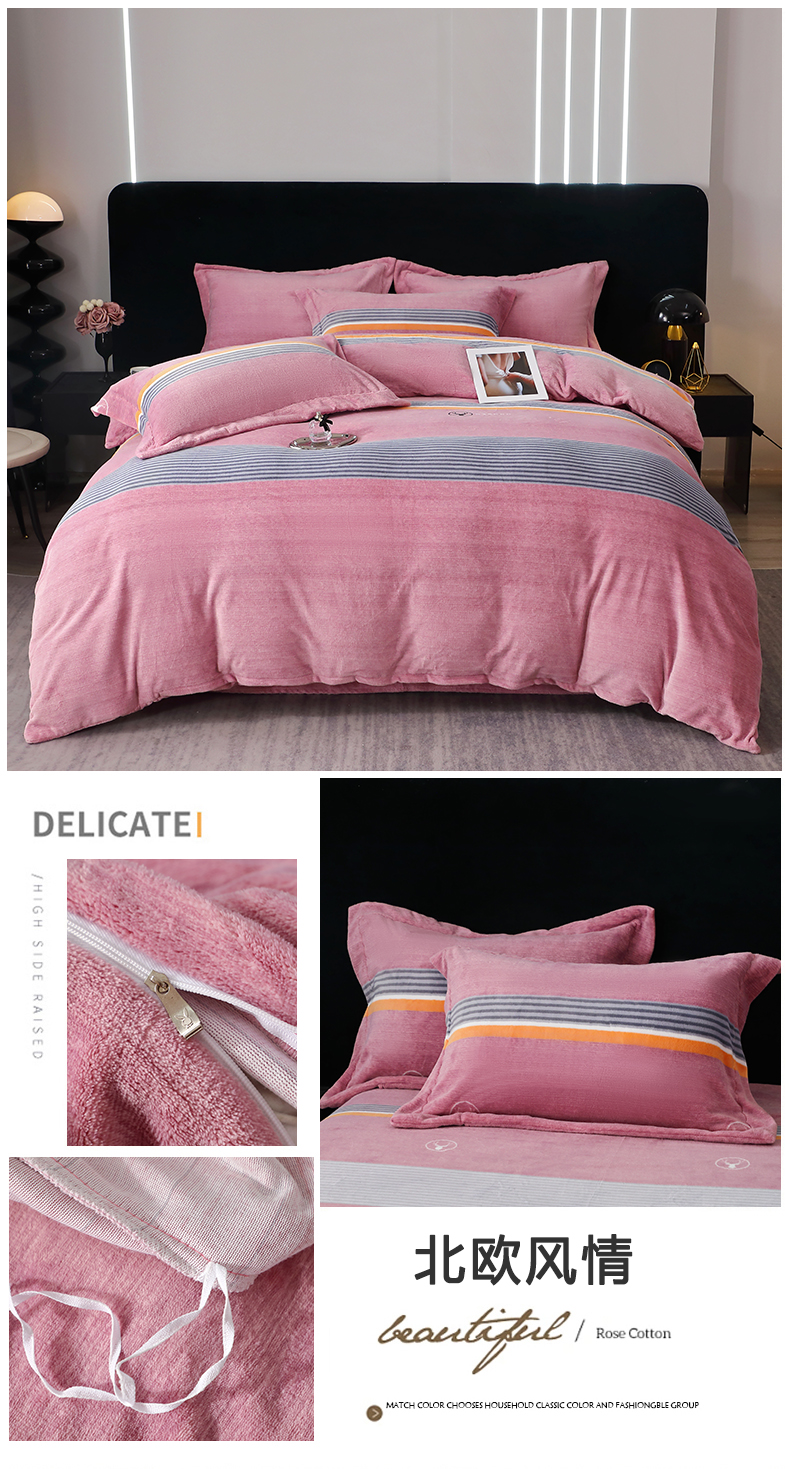 (总)席之家 2025新款刺绣牛奶绒四件套,花语-卡其玉,花语-奶咖,花语-青柠绿,花语-少女粉