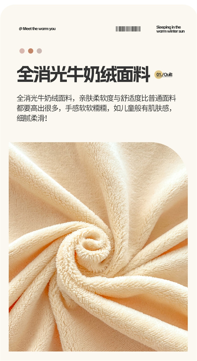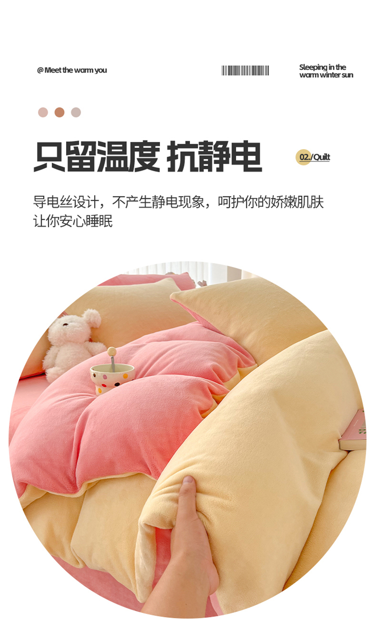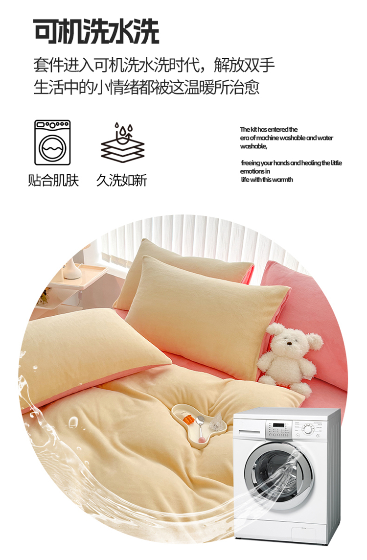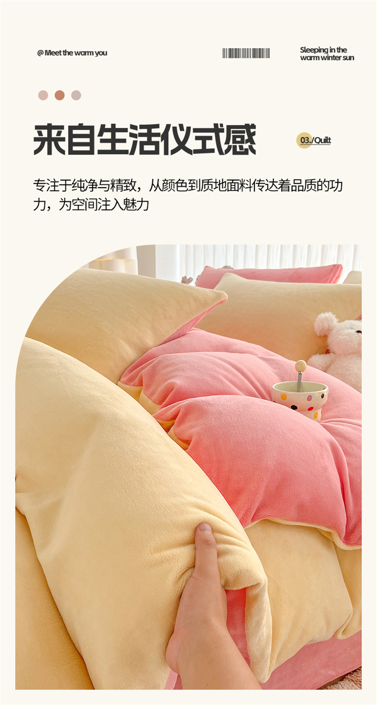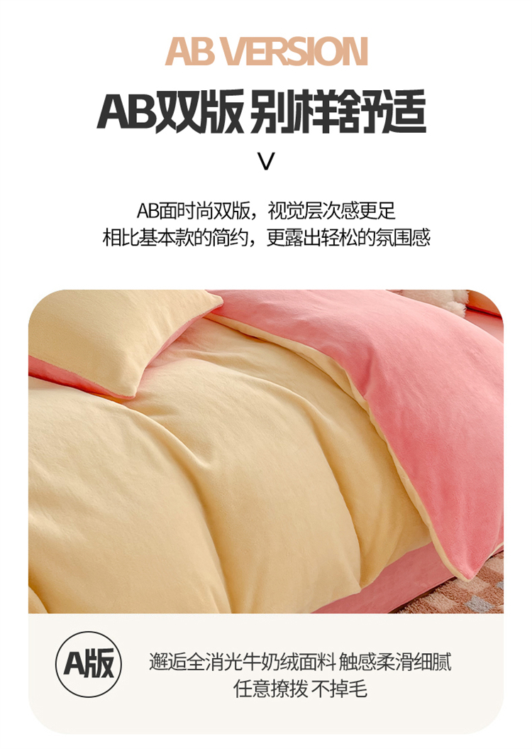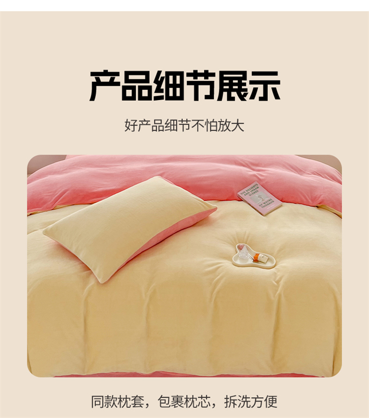 商品名称:言熙居 2024新款纯色双拼30克8一9斤牛奶绒四件套 奶黄拼浅粉