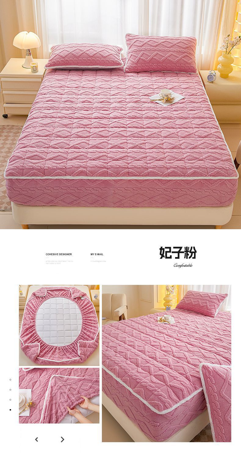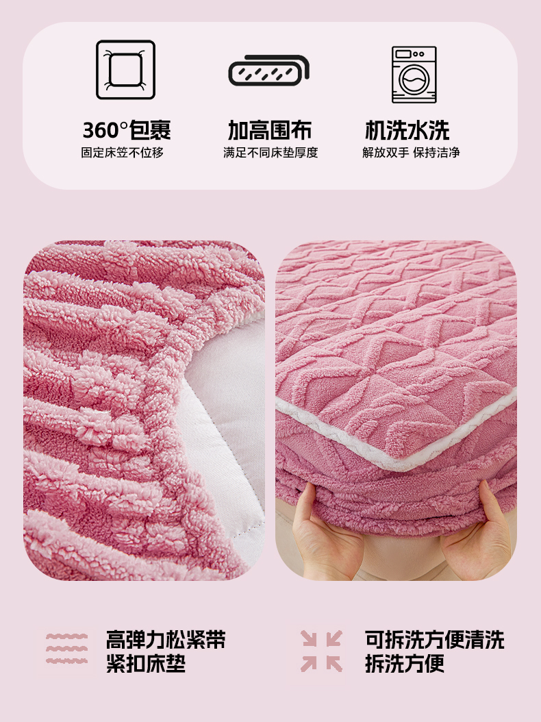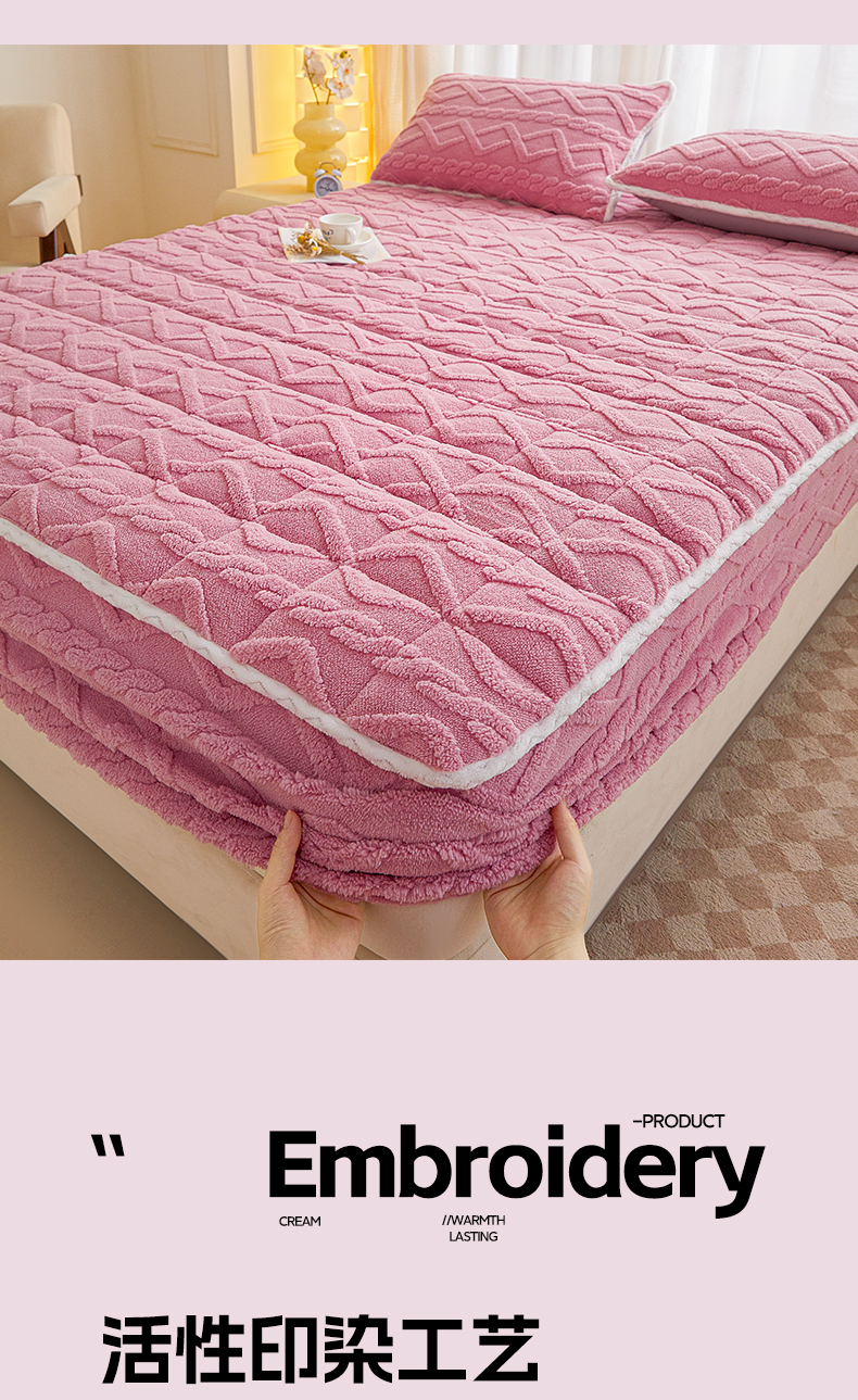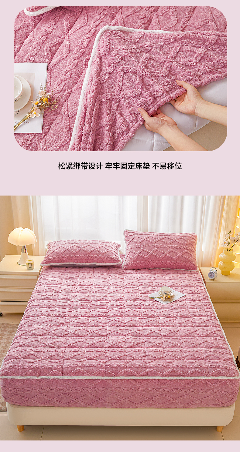 • 91家纺网 家纺一手货源 找家纺 2025塔芙绒加厚保暖床笠双人单人夹棉床笠保护套 妃子粉