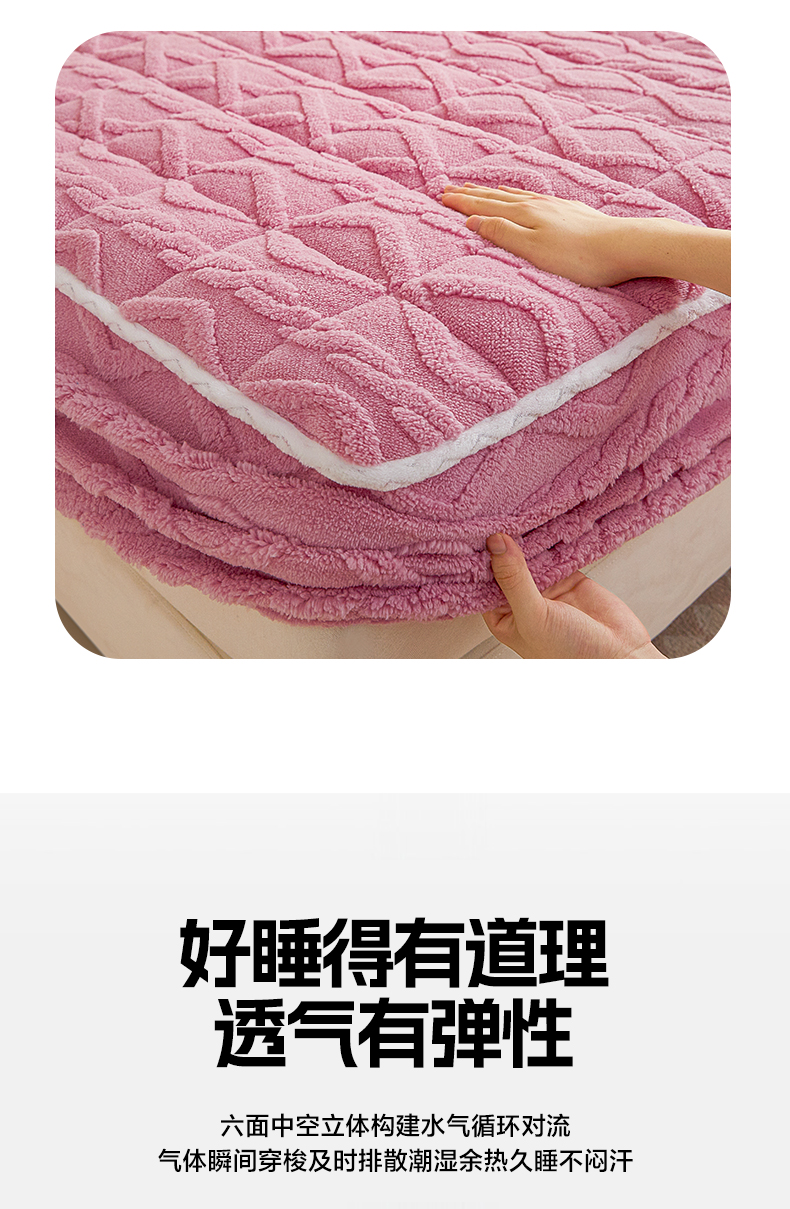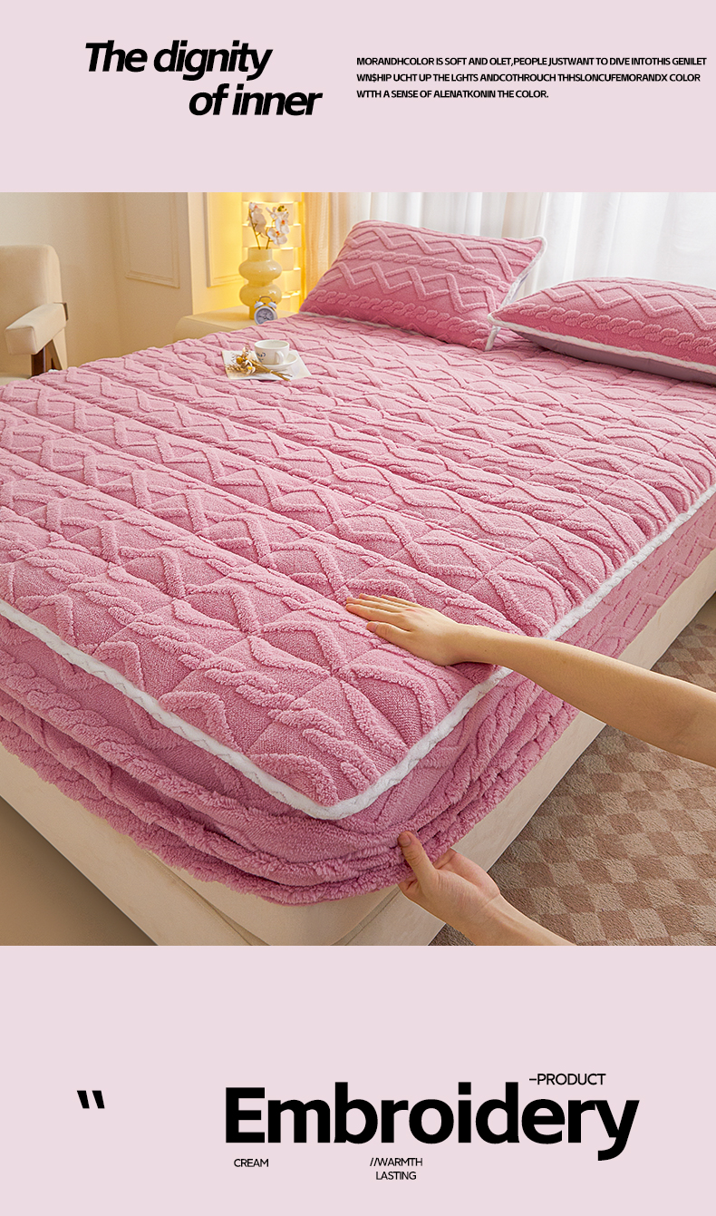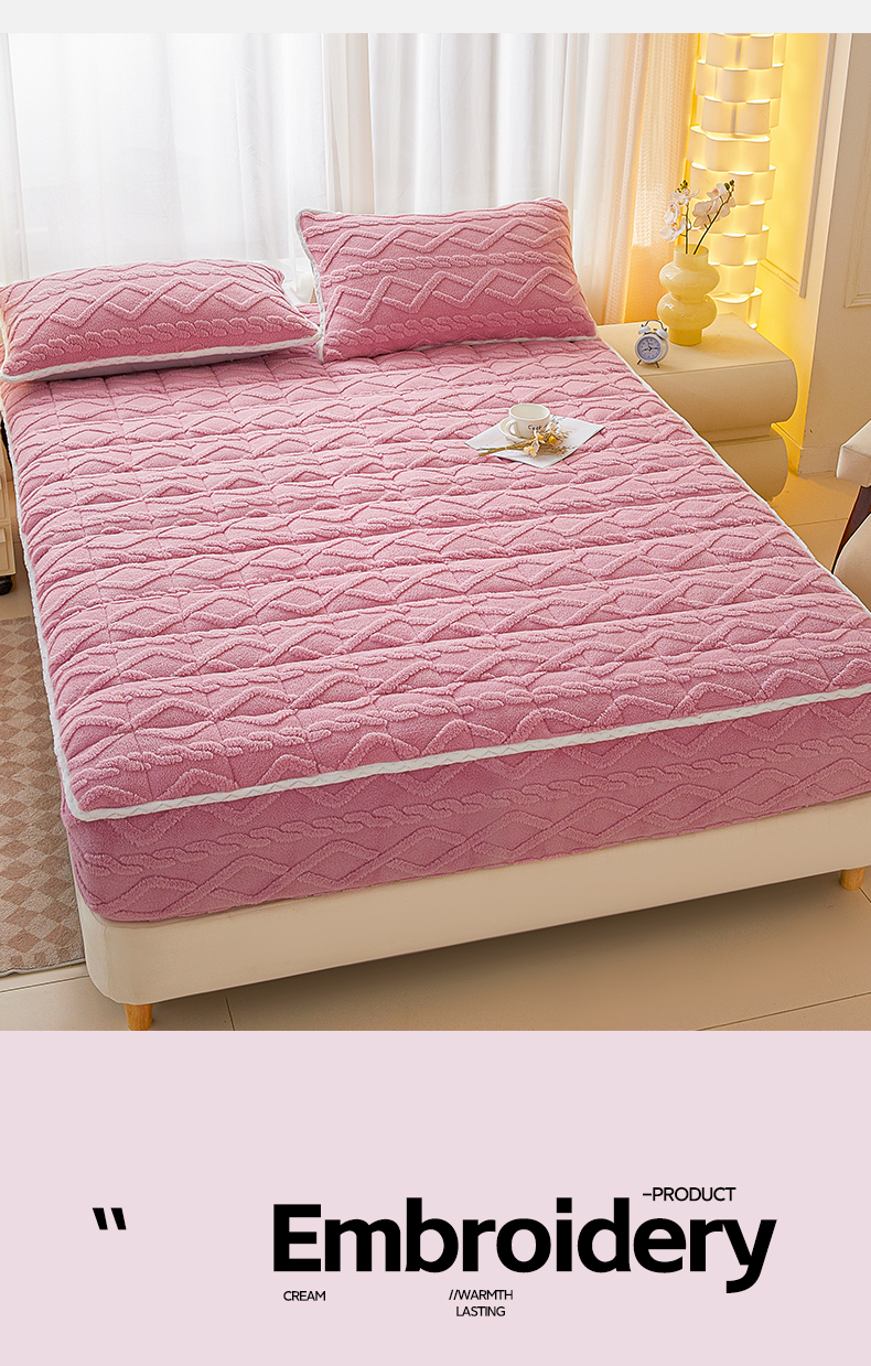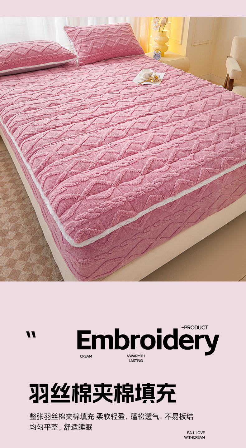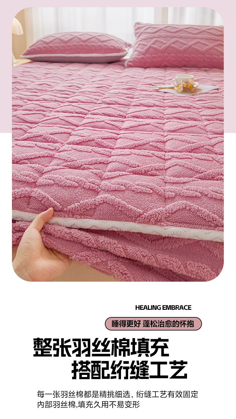 • 91家纺网 家纺一手货源 找家纺 2025塔芙绒加厚保暖床笠双人单人夹棉床笠保护套 妃子粉