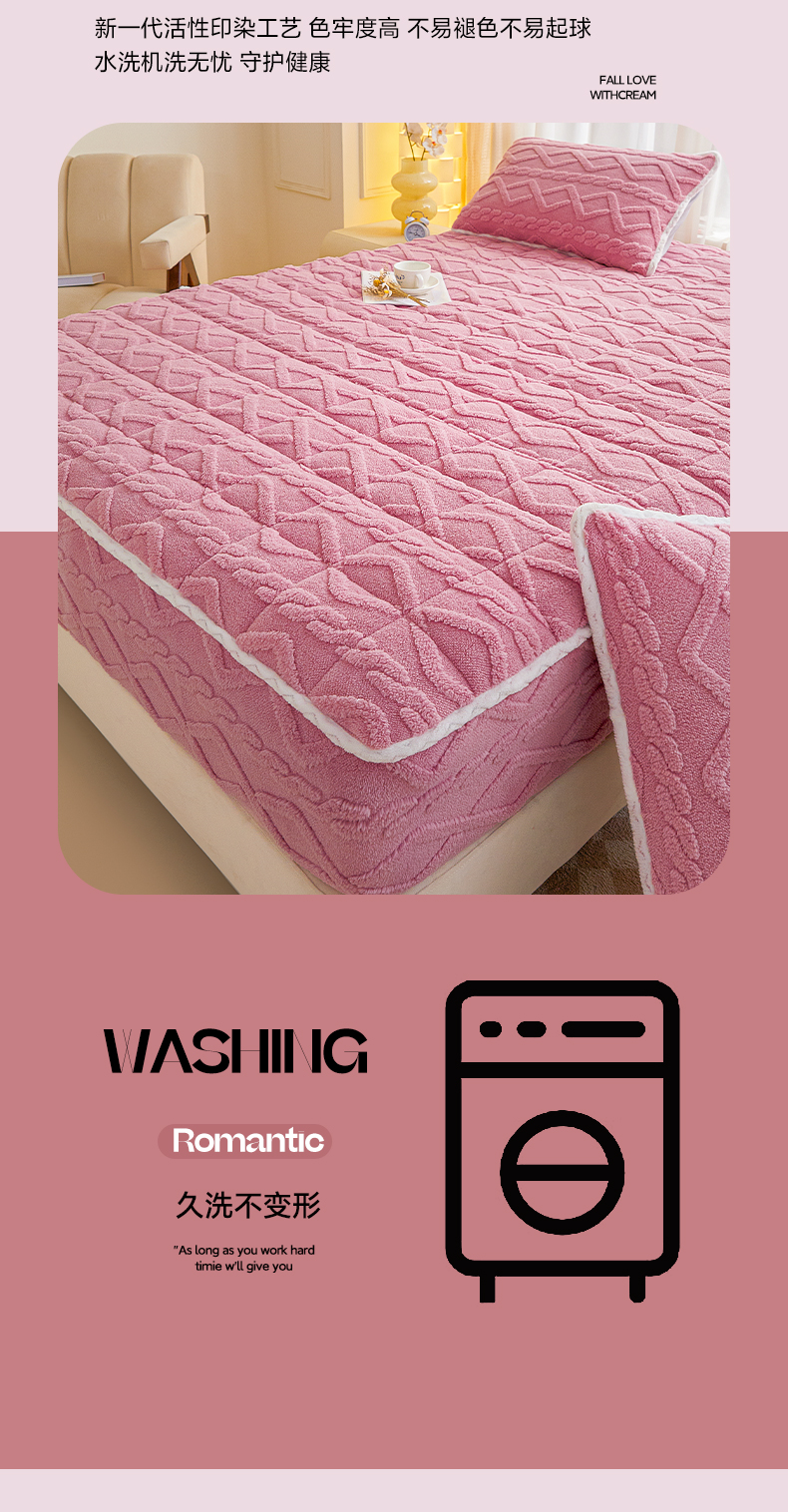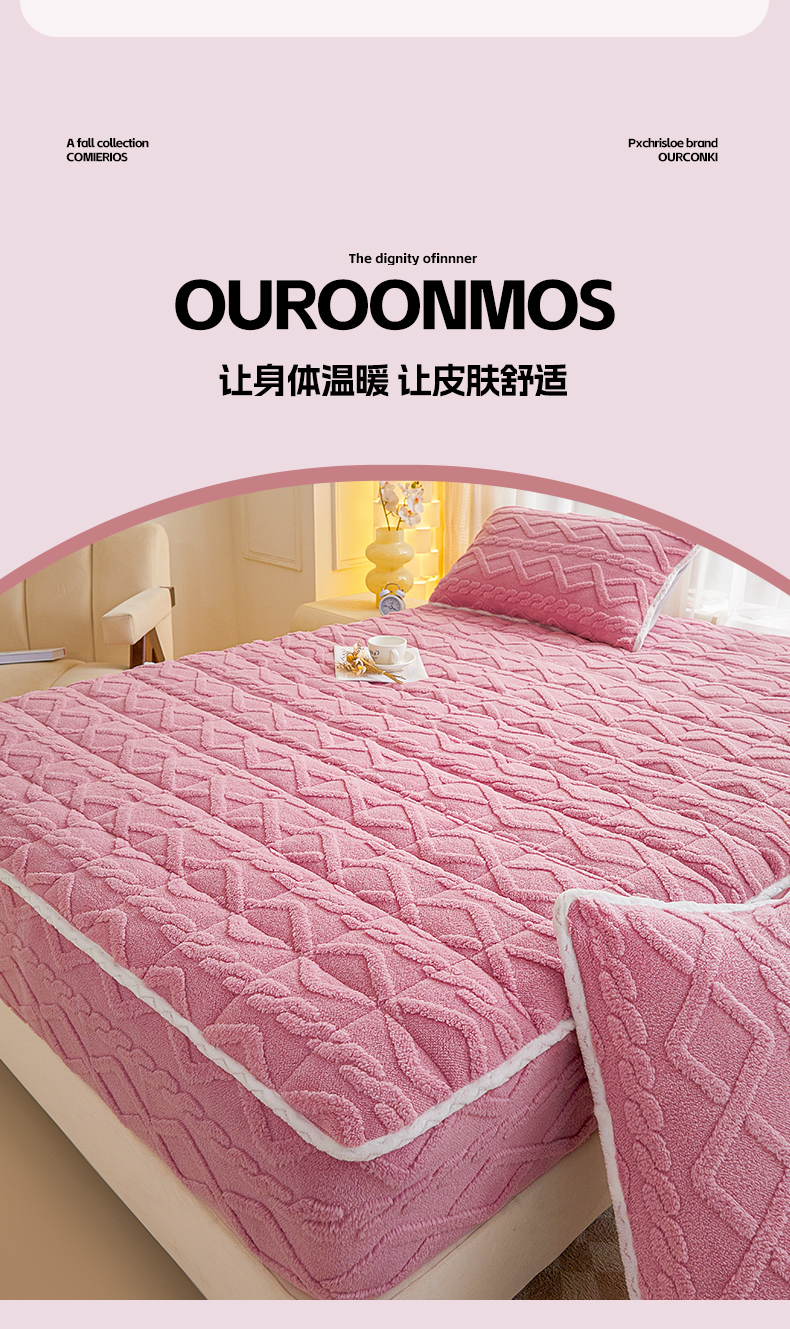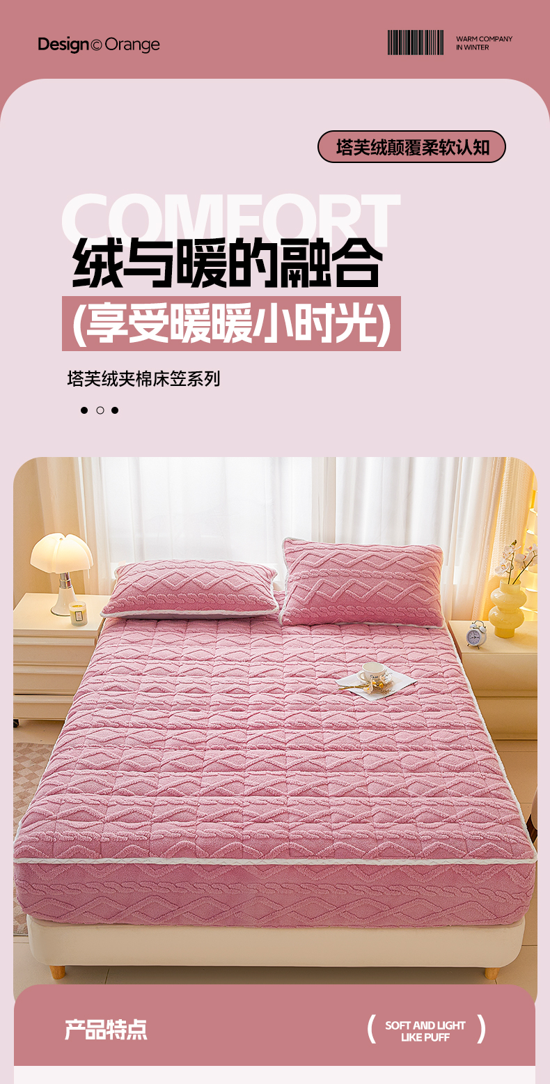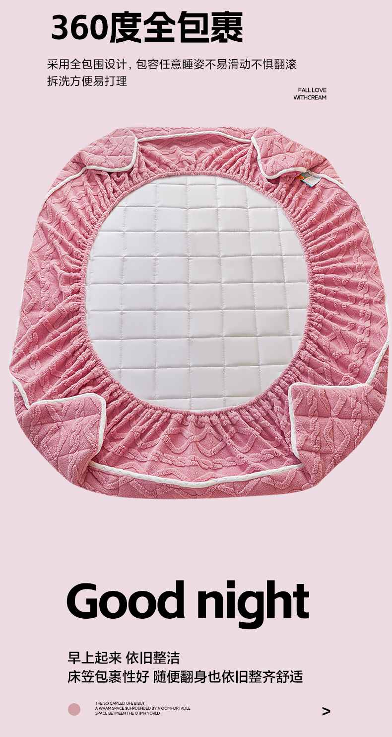 • 91家纺网 家纺一手货源 找家纺 2025塔芙绒加厚保暖床笠双人单人夹棉床笠保护套 妃子粉
