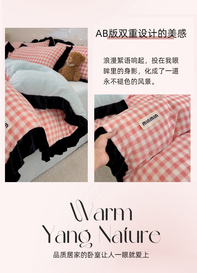 (总)米莱家纺 2025新款兔毛绒花边牛奶绒四件套,彩色圆点,繁花,粉黛,蝴蝶结,咖圆点,可爱兔,可爱熊,蔷薇